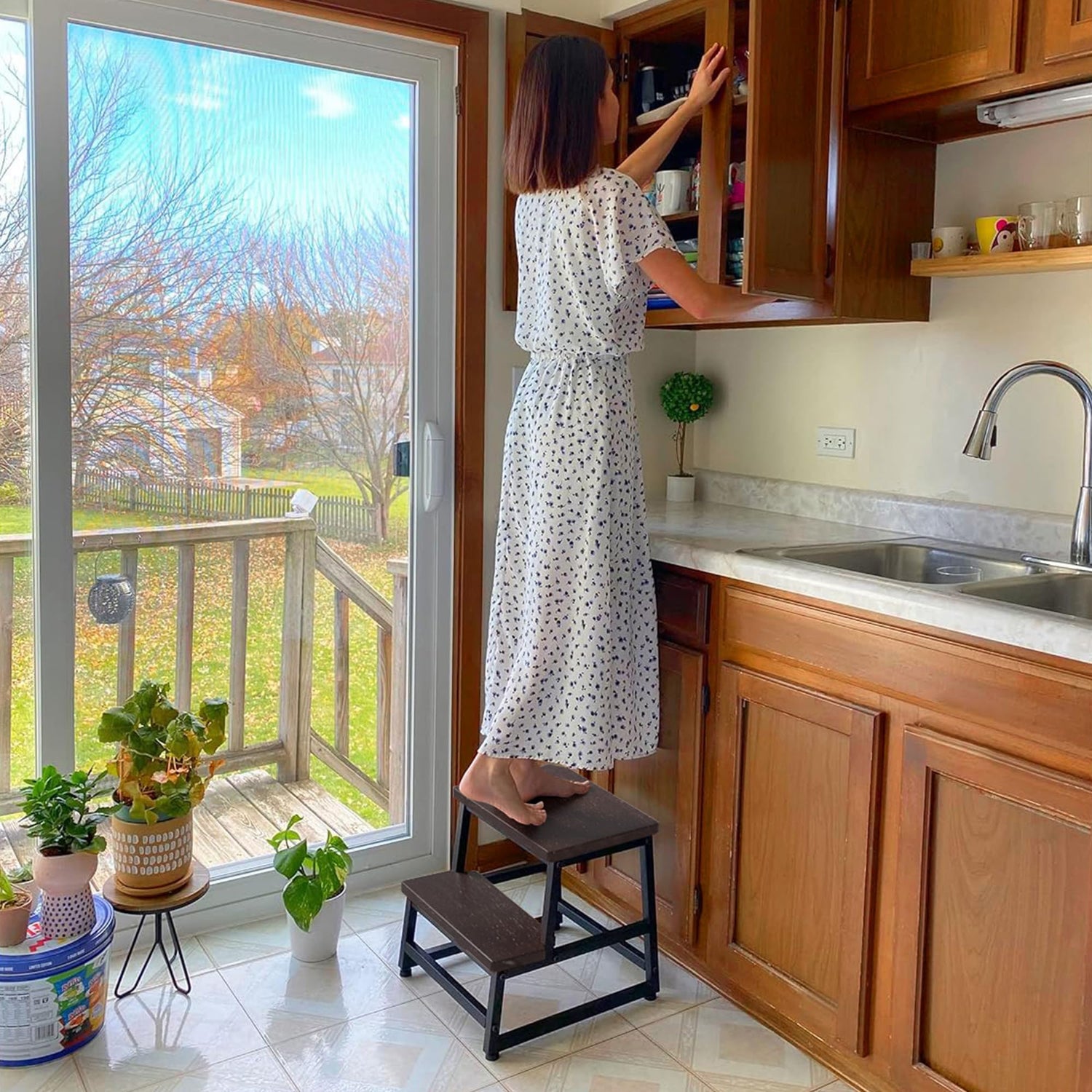 - Multi-Purpose: Wooden step stool for adults is perfect for bedroom, kitchen, bathroom, porch, hot bub, outdoor, garage, rv, suv, track etc. 2 step stool can be used as kitchen step stool, bedside step stool, closet step stool, hot tub steps, rv steps, photography stool, outdoor stool etc. And the stool is suitable for adults, kids, sensiors and elderly