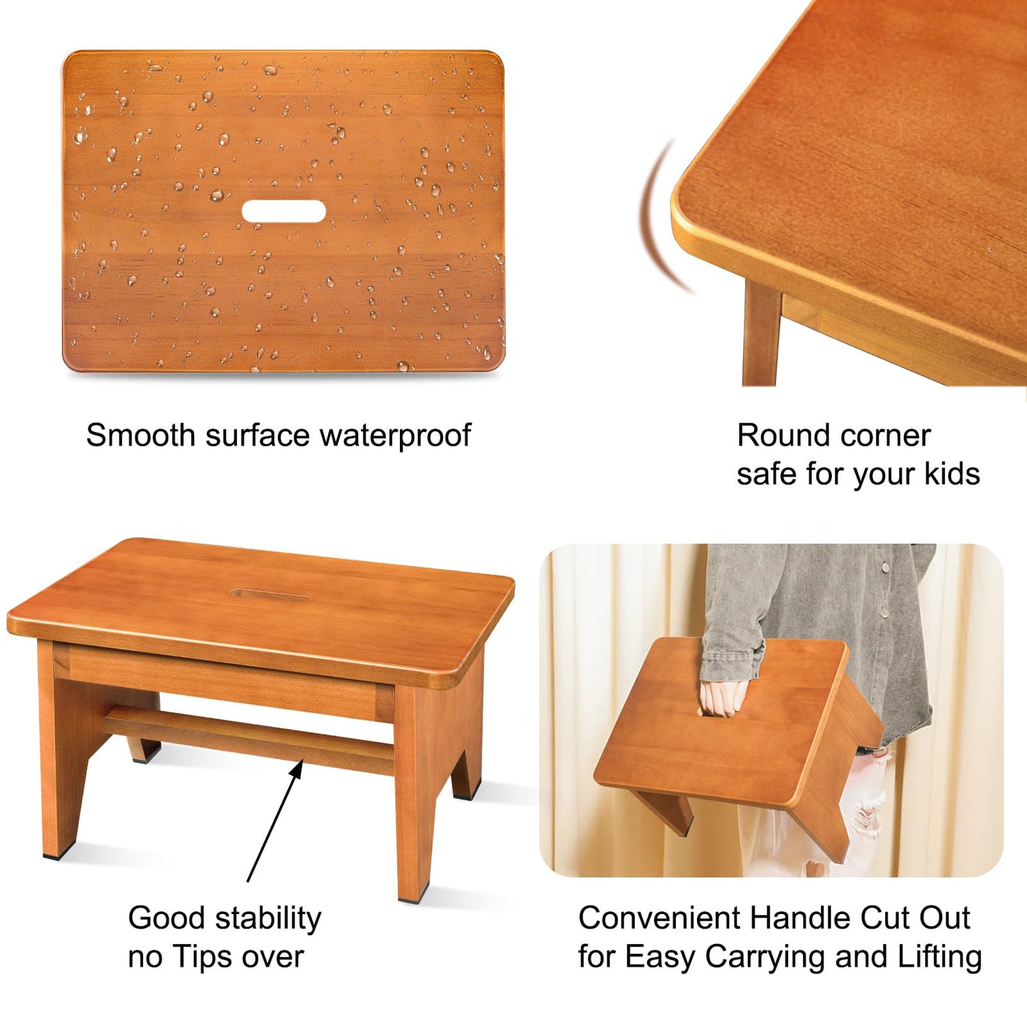 - ★【EFFORLESSLY PORTABLE】: Designed for convenience, this high stool features rounded edges for safety and a handy circular handle right in the center. Moving it around your home is a breeze—just lift and place it wherever you need that extra height!