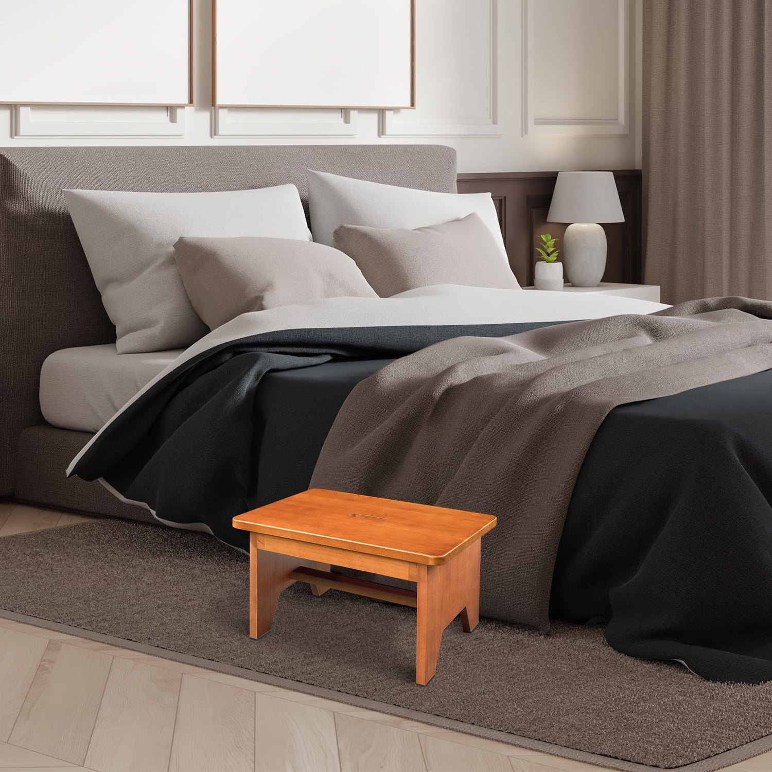 Wooden Step Stool for Adults,9.1''High One Step Stool for High Bed/Kitchen Riser,550 Lbs Beside Step Stool for Elderly Kids-Sturdy/Durable Footstool,Nonslip Stepping Stool for Bedroom/Kitchen/Bathroom