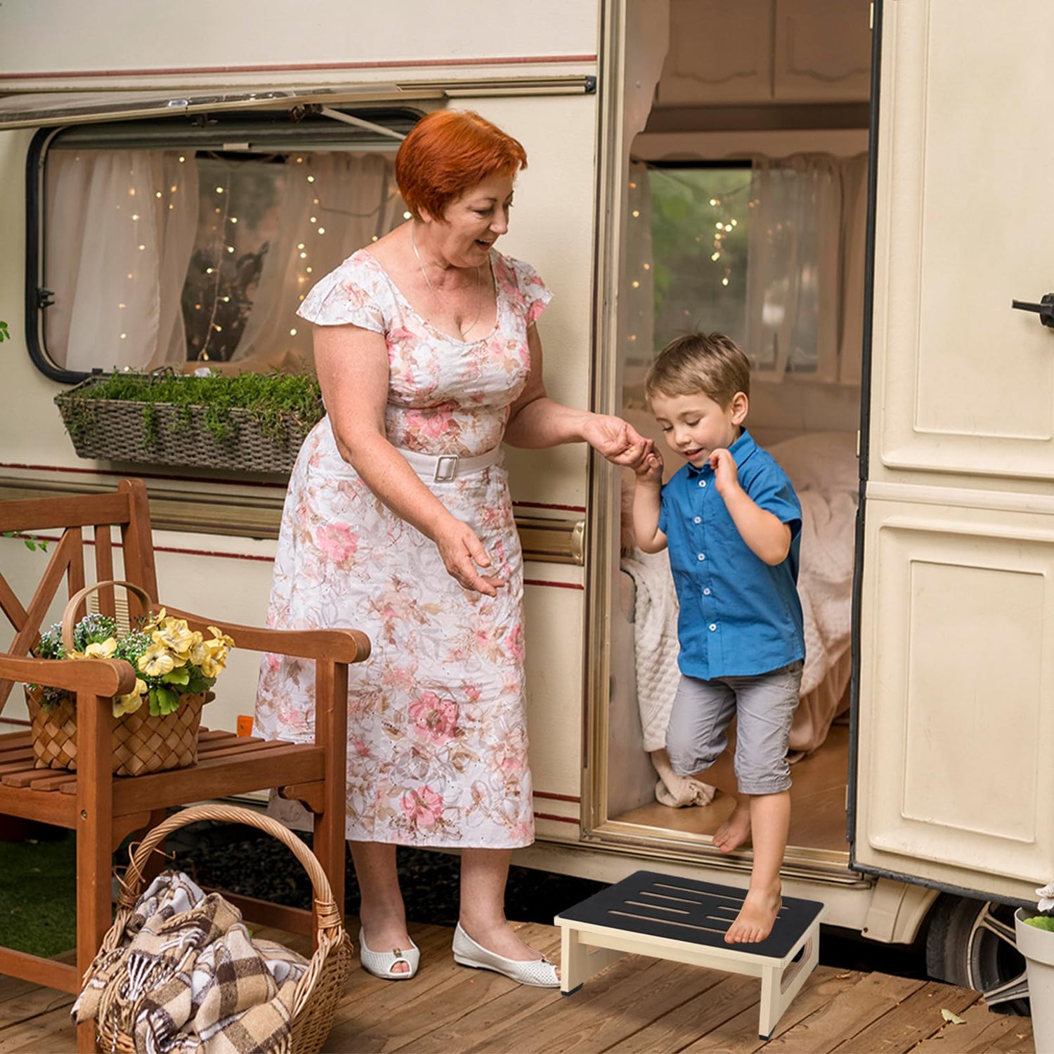 - 【More Than One Function】 : Available for outdoor and indoor use, as a RV step stool for getting in car, door entrance steps, bathtub step stool, toilet step stool, bedside step stool or office footrest step. It aids in reaching the kitchen shelf and serves as a convenient kitchen step stool, useful for those recovering from surgery or battling joint problems. Of course, the step stool is perfect as a gift to show you care
