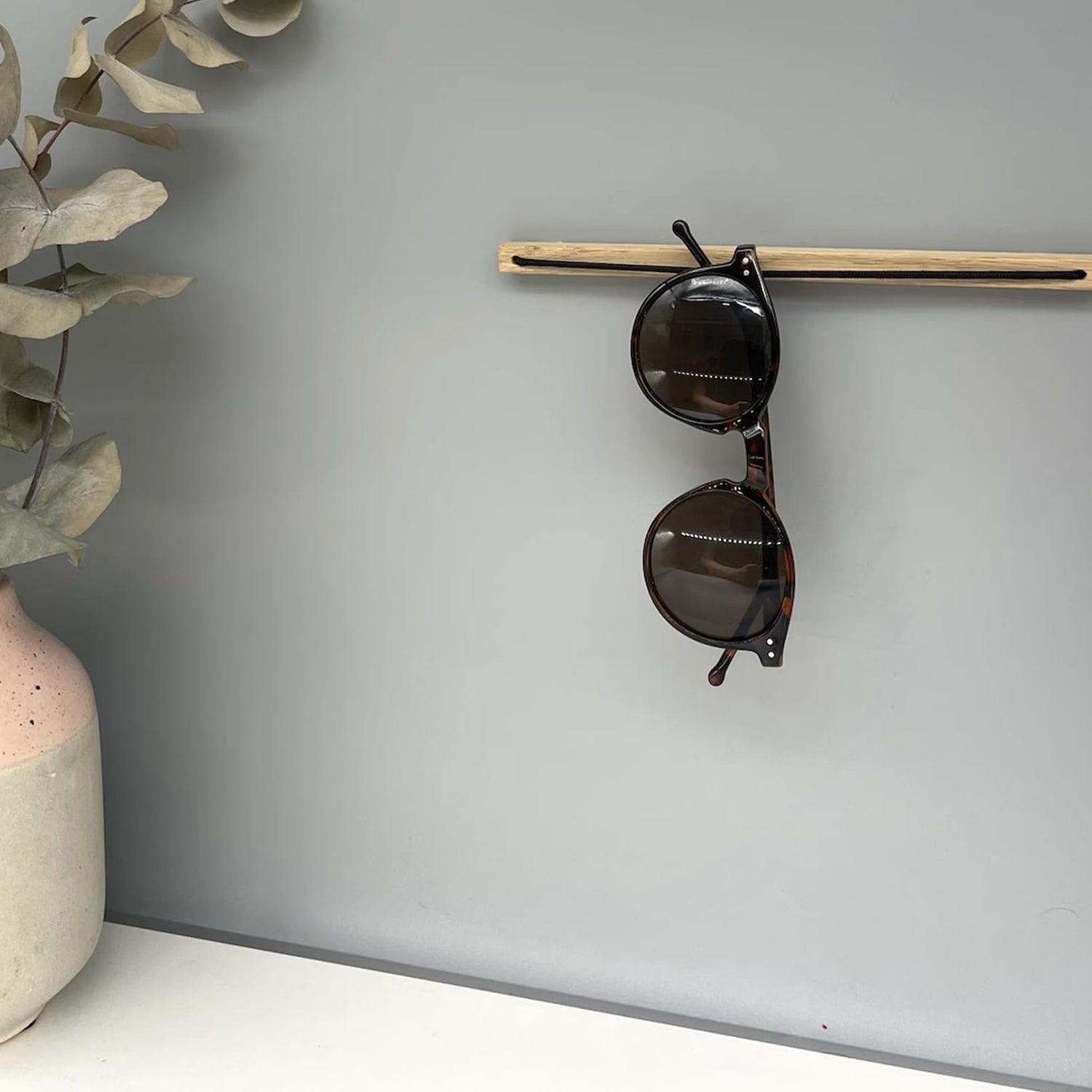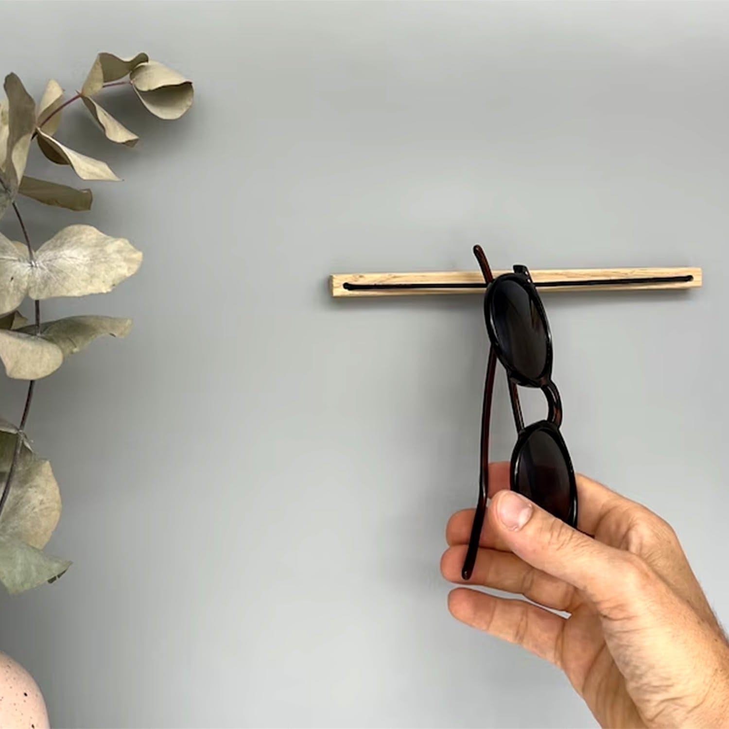 This wooden sunglass rack is designed to be easily assembled without the need for any tools or expertise. With a strong adhesive strip on the back, simply press it onto your wall and wait a moment for it to set. It's the latest trend in Denmark, where hanging your sunglasses on the wall has become a chic and stylish way to showcase your eyewear.