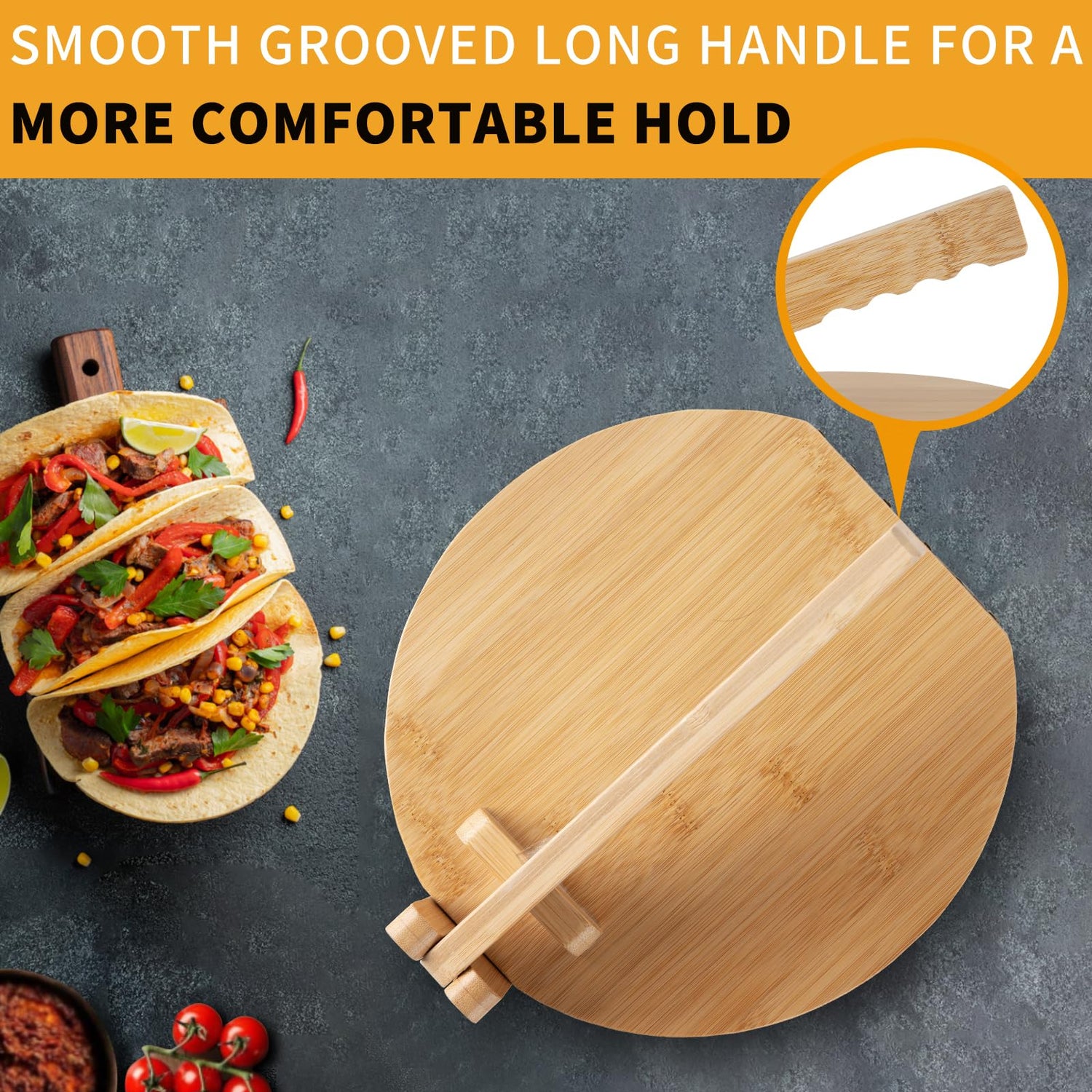 - Wide Application: The 10-inch wooden tortilla press allows you to easily make larger tortillas such as quesadillas, burritos, enchiladas, tacos, and more. The wood tortilla maker press is suitable for gluten-free dough, and corn flour, but not for flour-based products, as the gluten in the flour makes it difficult to press it thinly enough.