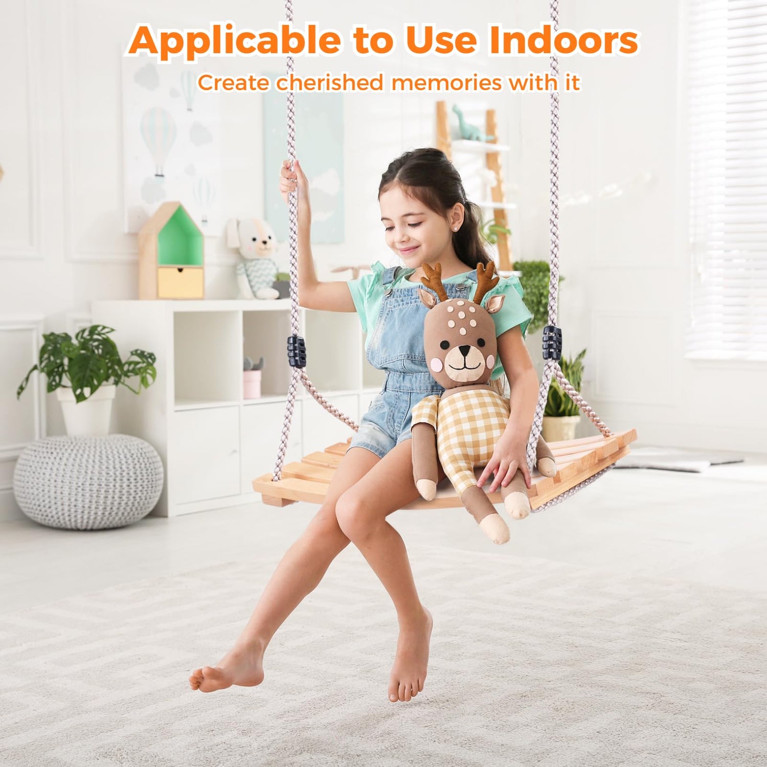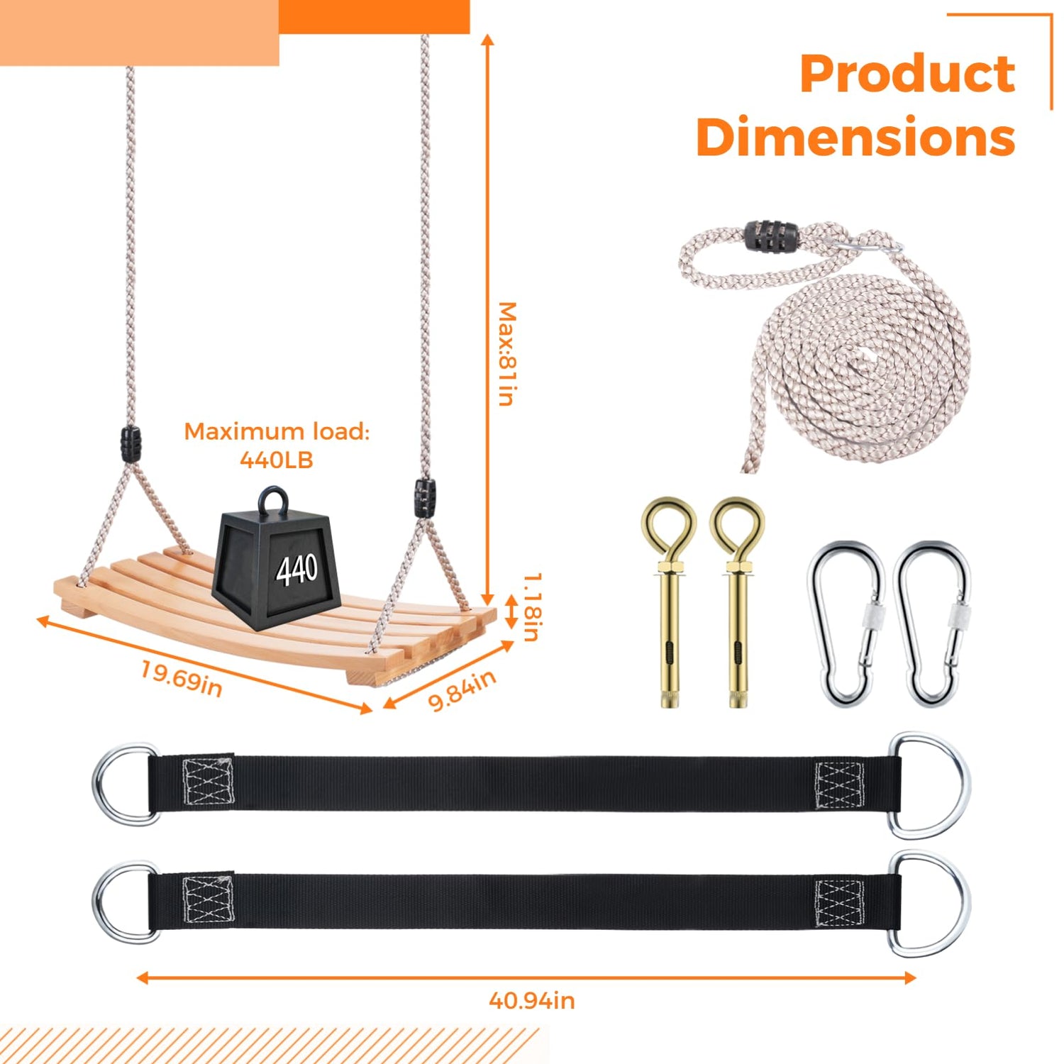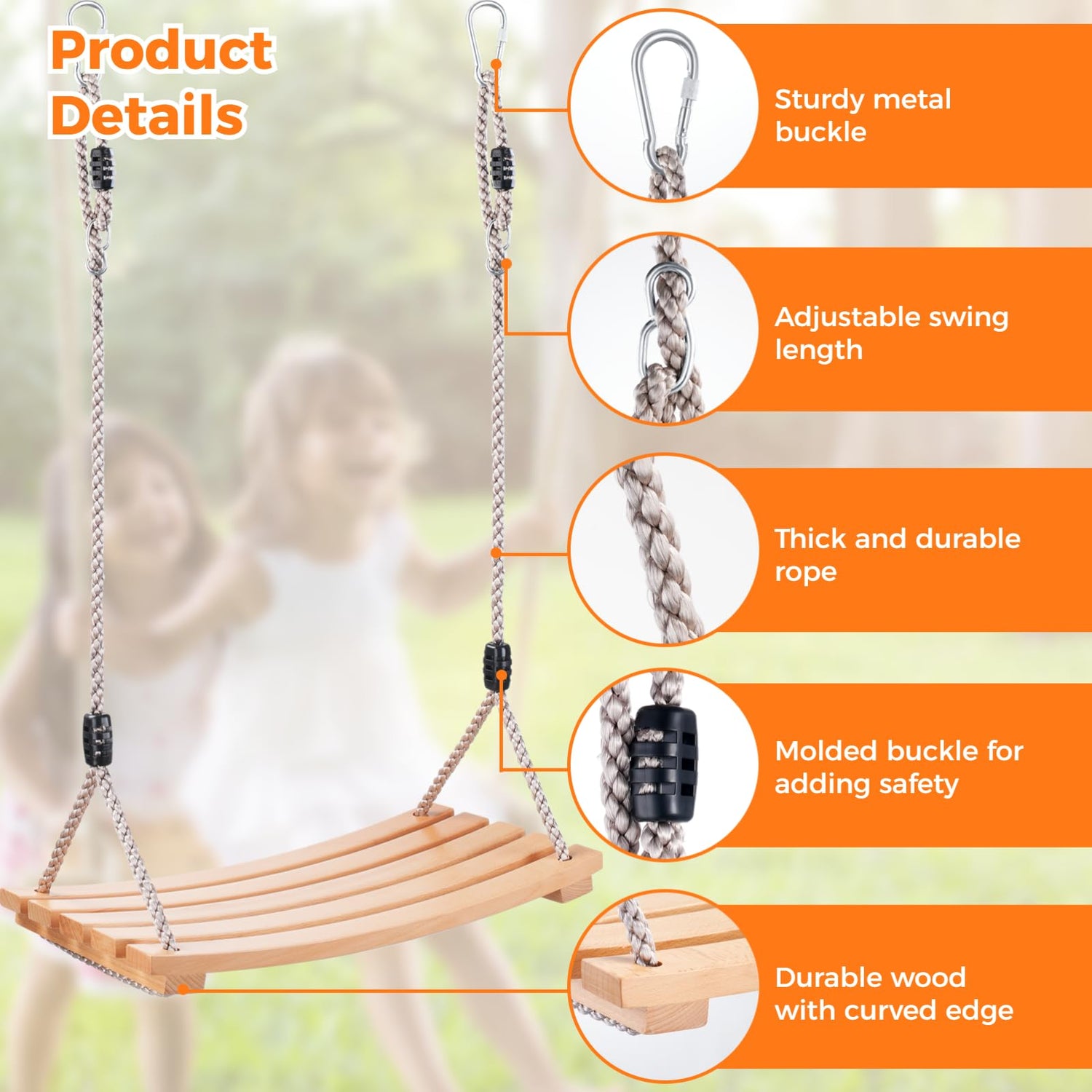 - 【Wooden Swing for Adults & Kids】 Thanks to the reliable materials, this swing is strong enough to withstand loads up to 500 lbs, easily supporting an adult’s weight. The rope is available to adjust in length, which is suitable for both adults and kids . Have endless fun on the swing with your children!