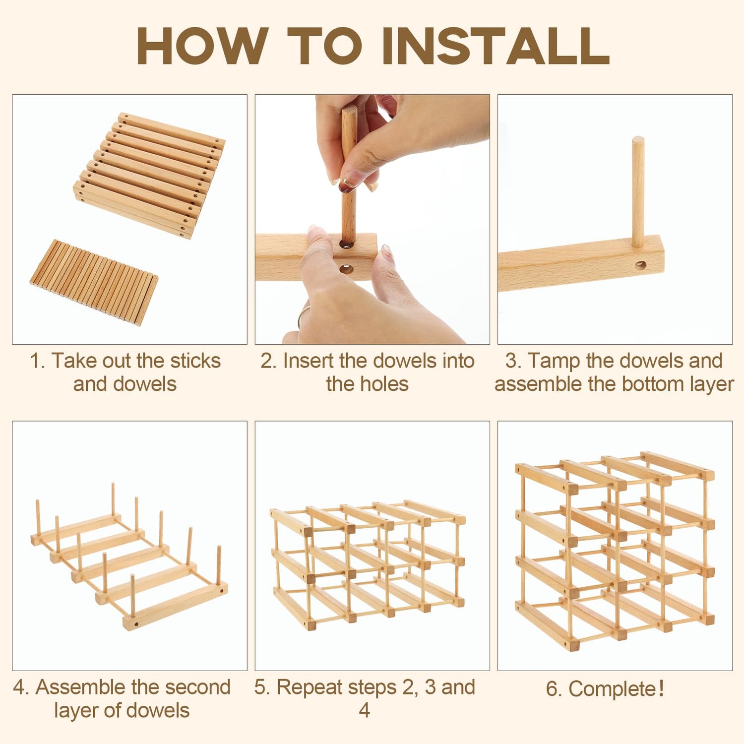 - EASY TO ASSEMBLE: This wine rack made of solid wood comes with easy to follow instructions that make assembly a breeze. In just 15 minutes, you can assemble the wooden parts and enjoy a simple and efficient installation process. The wine rack can be flexibly designed into various shapes according to your personal preference or space size, allowing you to show off your DIY skills!
