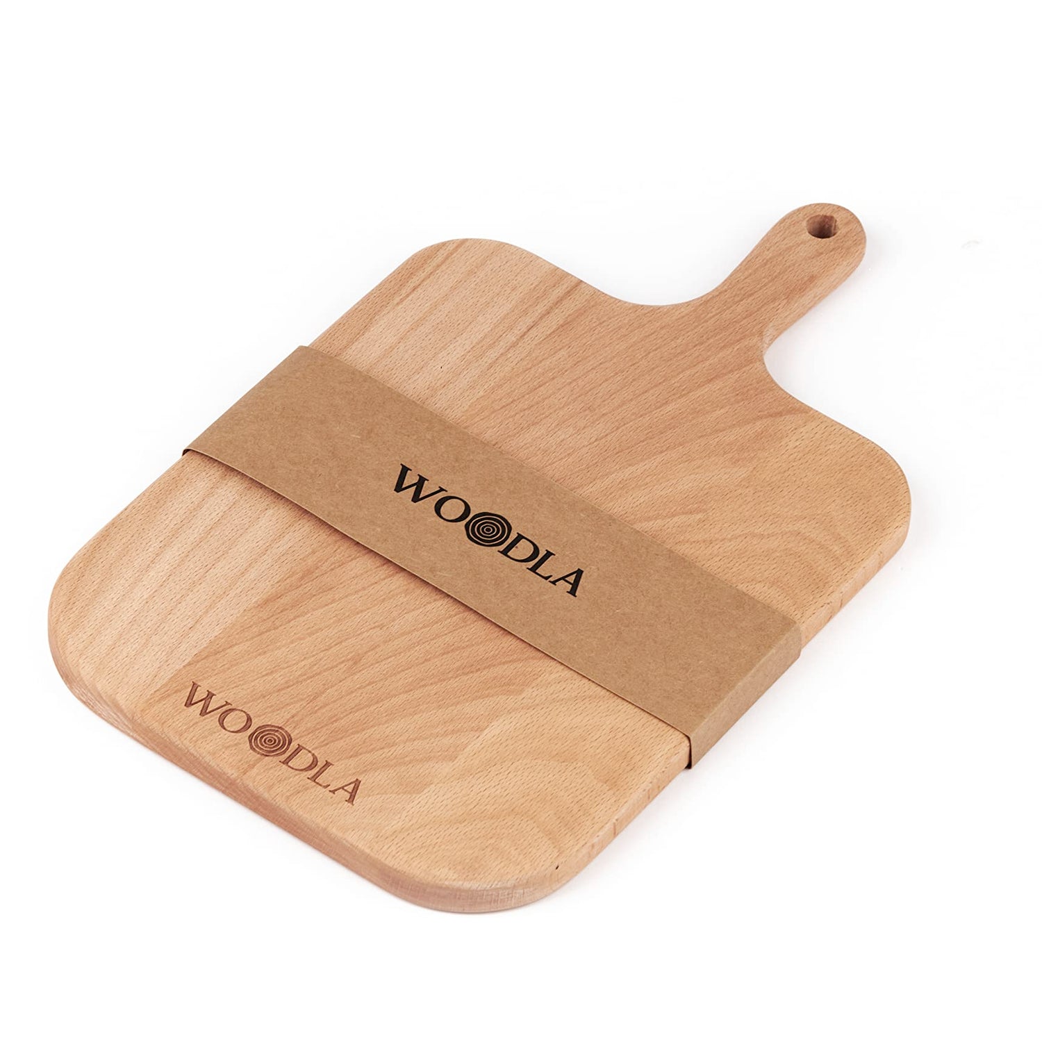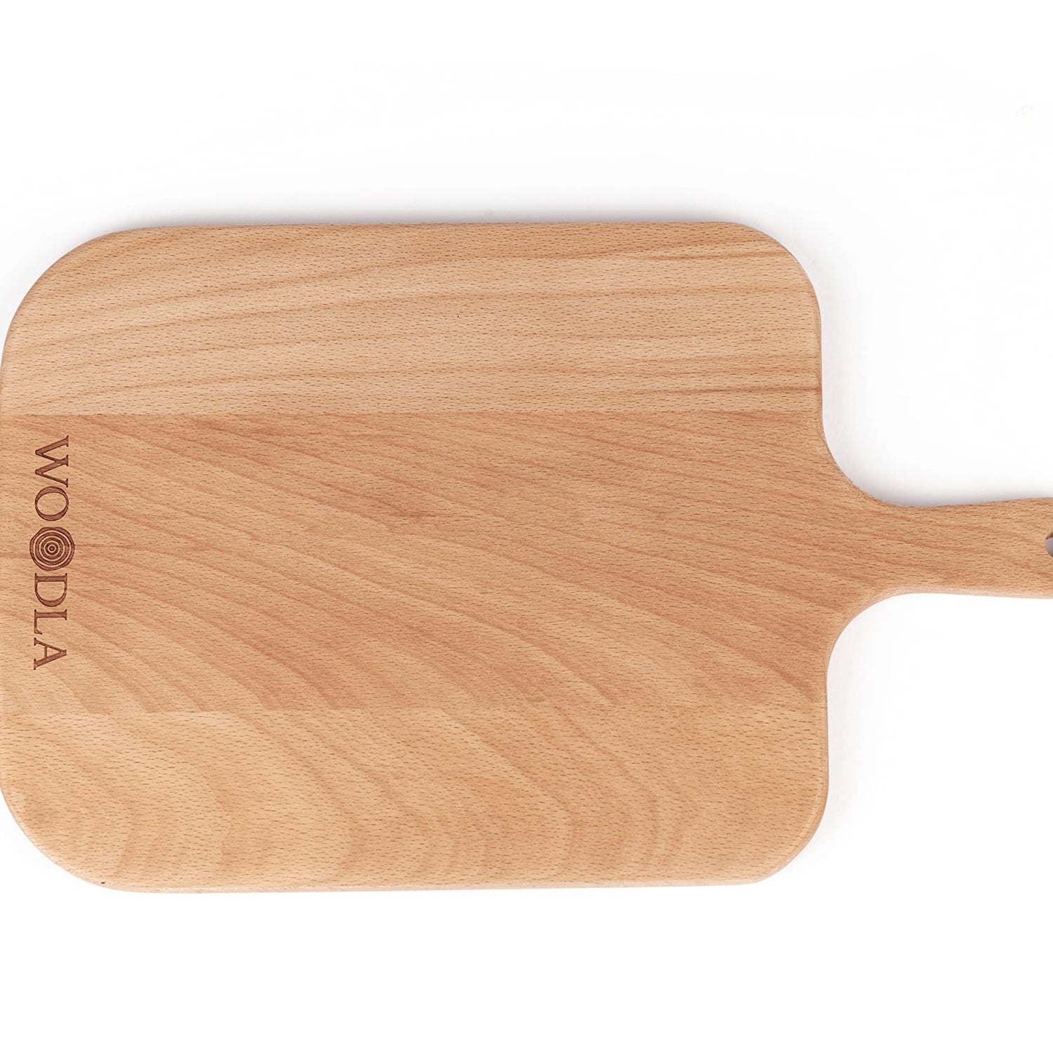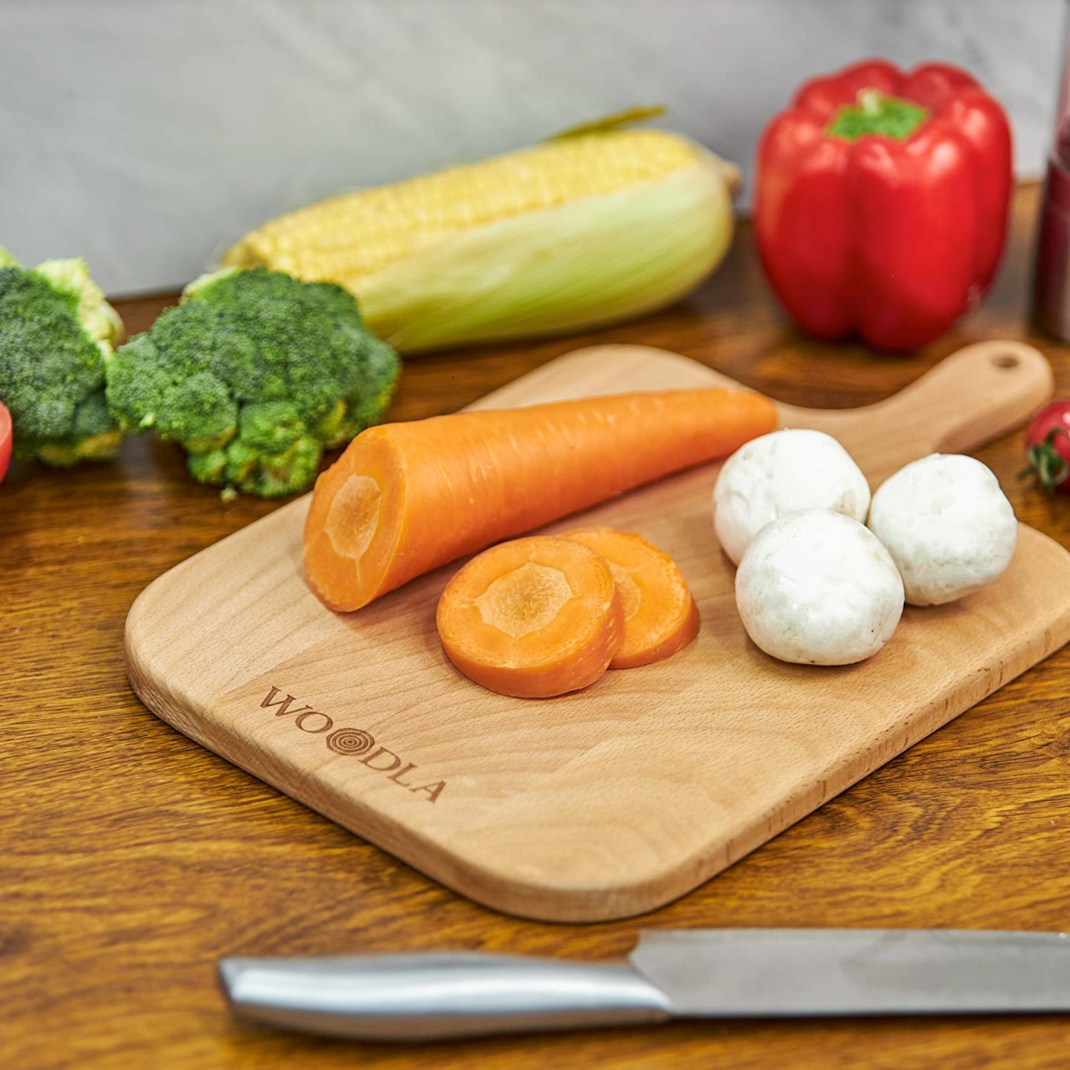 Woodla 13x7.5 Inch Thin Wood Cutting Board with Handle - Kitchen Serving & Charcuterie Board for Meat, Cheese, Fruits, Vegetables - Personal