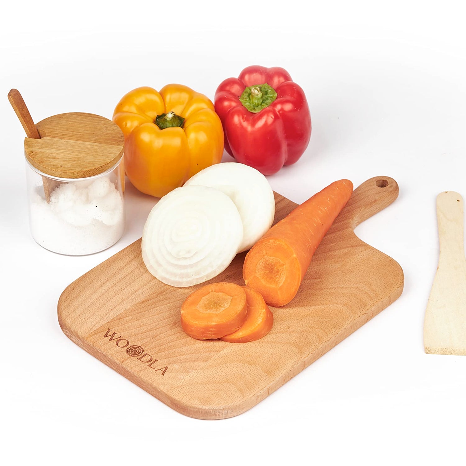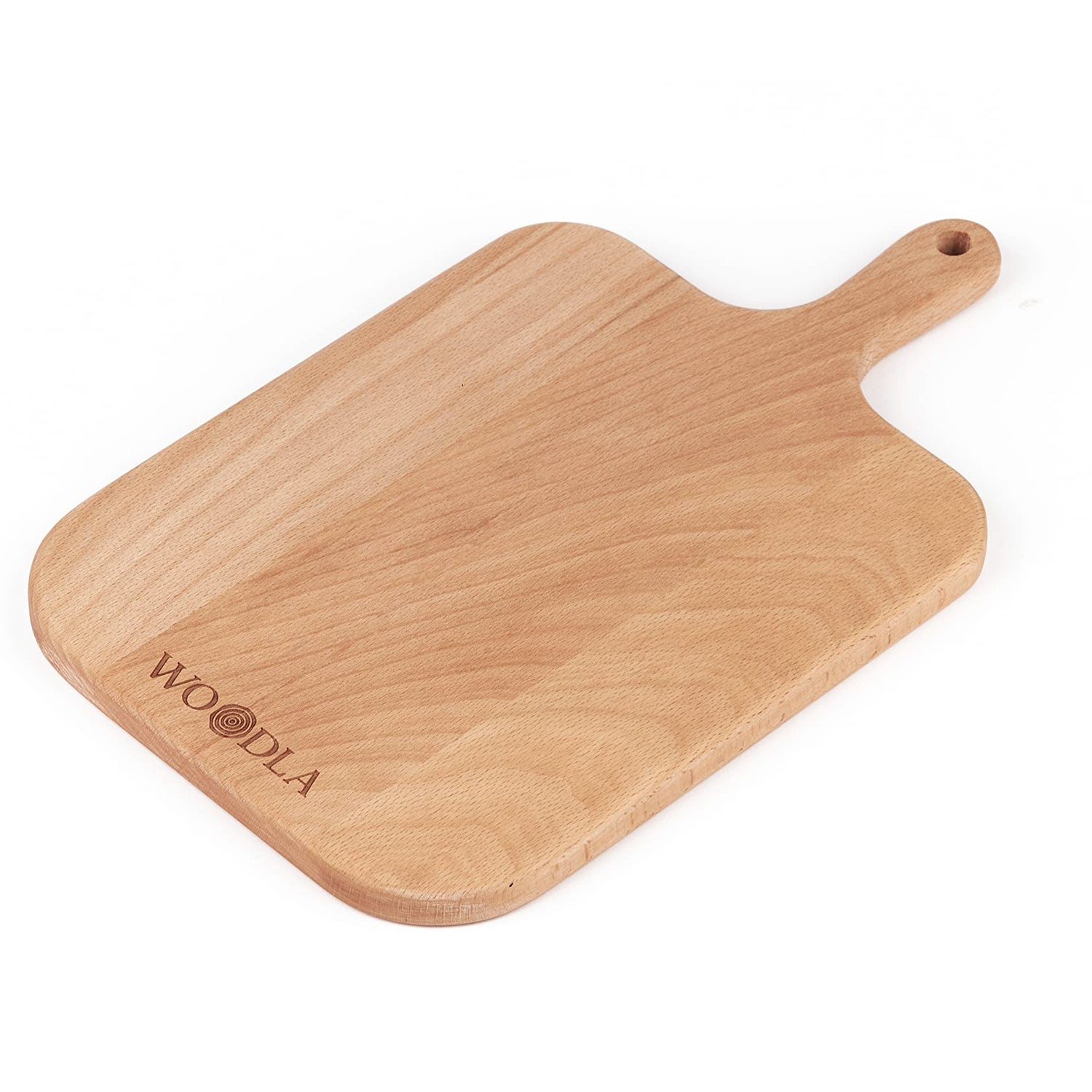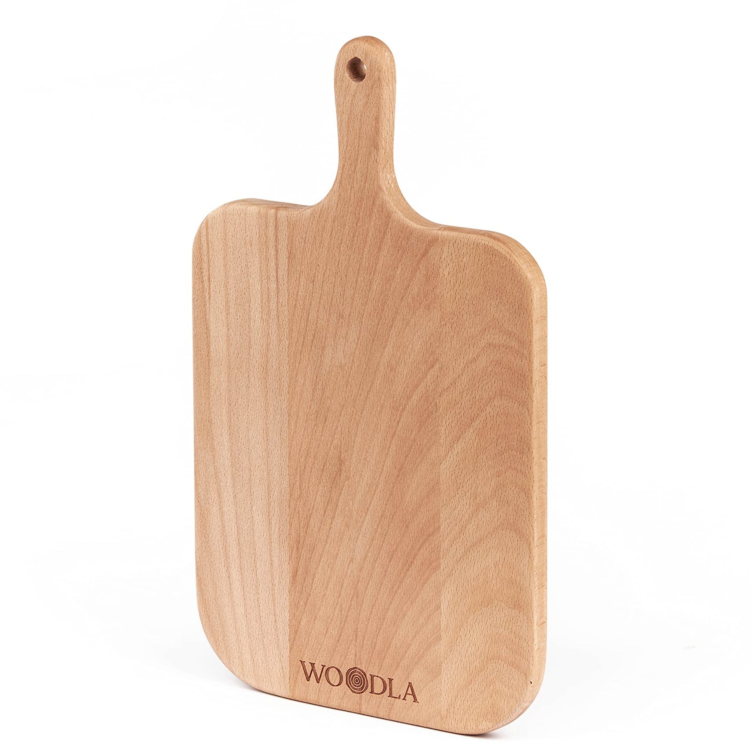 Woodla 13x7.5 Inch Thin Wood Cutting Board with Handle - Kitchen Serving & Charcuterie Board for Meat, Cheese, Fruits, Vegetables - Personal