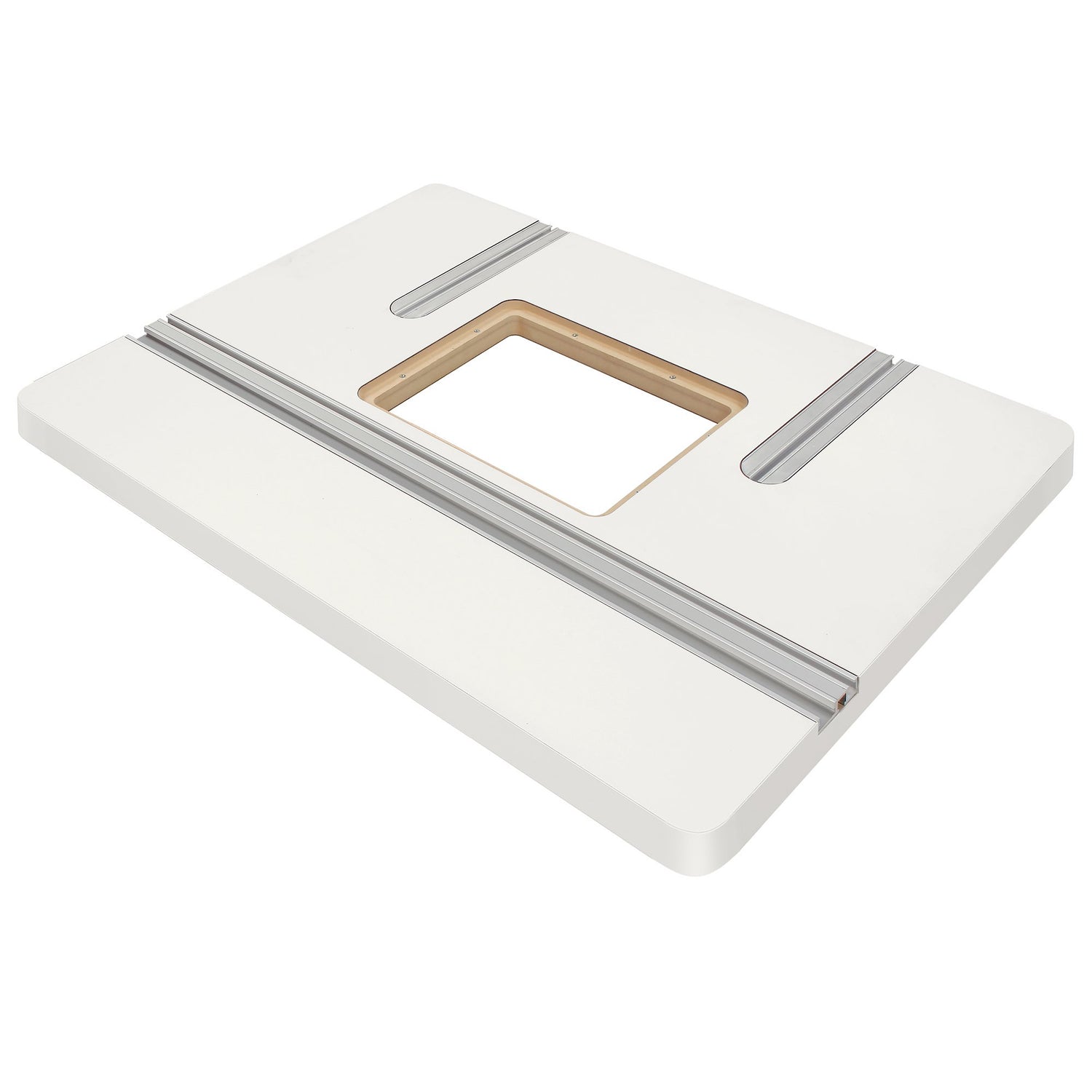 This is not your average router table. This table features 2 layers of MDF chemically welded together in a 50-ton press to ensure flatness and strength. The micro-dot laminate features a low friction surface that outperforms standard plastic laminate and to maximize dimensional stability it's bonded to both table fences. High strength aluminum extrusions for the combination miter/T-track and fence mounting tracks are bolted in place from the underside of the table so it's never going to let you down by loosening or lifting. Durable PVC edging helps protect against moisture and dinged edges. Both sizes of MDF tables are fully compatible with all our router accessories, including our steel bases.