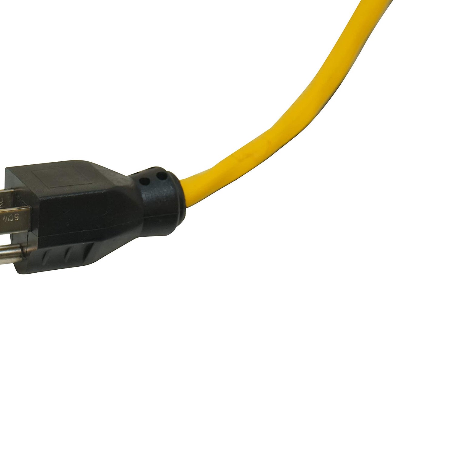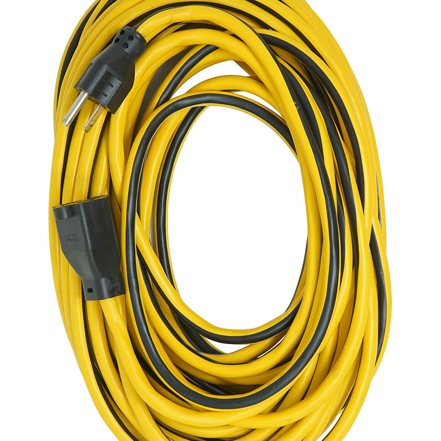 Details: Woods 0521 High Visibility Extension Cord, Black/Yellow, 50-Foot. 50-foot SJTW construction with cable temperature rating of -40 to 60-Degreec. Reinforced blades help prevent accidental bending or breaking. Heavy-duty strain relief protects electrical connections resulting in longer cord life. 14-AWG cord jacket provides superior abrasion, chemical, oil and moisture resistance. High visibility yellow/black stripe cord for increased safety awareness and helping to prevent job-site loss. Striped cords feature a dominant color and an extruded colored stripe that runs the length of the cord. Industry Approvals: UL Listed, CSA Listed, Meets OSHA requirements. The Woods (R) brand is a registered trademark of Coleman Cable