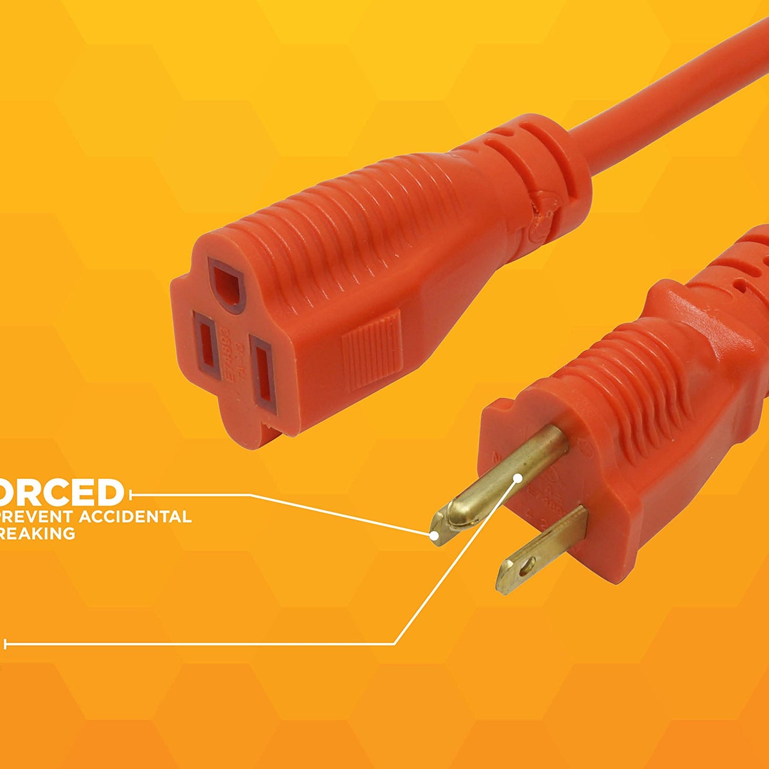 Product Description Woods 627 14/3 Outdoor SJTW Vinyl Extension Cord; Orange; 100-Foot. Rated to 13-Amps. This vinyl outdoor extension cord is helpful all around the house. It has a vinyl jacket that resists moisture; abrasion and prolonged exposure to sunlight. Reinforced blades help prevent accidental bending or breakings. Molded plugs and heavy-duty strain relief protects electrical connections resulting in longer cord life. Outer jacket won't mark floors or walls. This cord is recommended for general indoor/outdoor use. and is UL listed; cUL listed; ETL listed; and meets OSHA requirements for outdoor use. From the Manufacturer Woods 627 14/3 Outdoor SJTW Vinyl Extension Cord; Orange; 100-Foot. Rated to 13-Amps. This vinyl outdoor extension cord is helpful all around the house. It has a vinyl jacket that resists moisture; abrasion and prolonged exposure to sunlight. Reinforced blades help prevent accidental bending or breakings. Molded plugs and heavy-duty strain relief protects electrical connections resulting in longer cord life. Outer jacket won't mark floors or walls. This cord is recommended for general indoor/outdoor use. and is UL listed; cUL listed; ETL listed; and meets OSHA requirements for outdoor use.