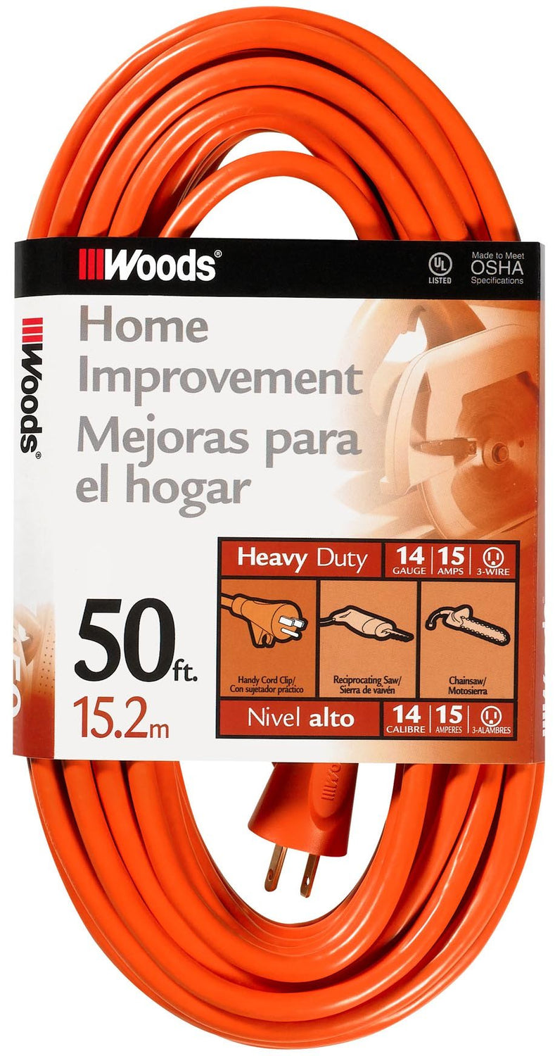 Woods Medium Duty Extension Cord, 50Ft, 14 Gauge, 3 Conductor, General Purpose Cord, SJTW, Orange, 0626