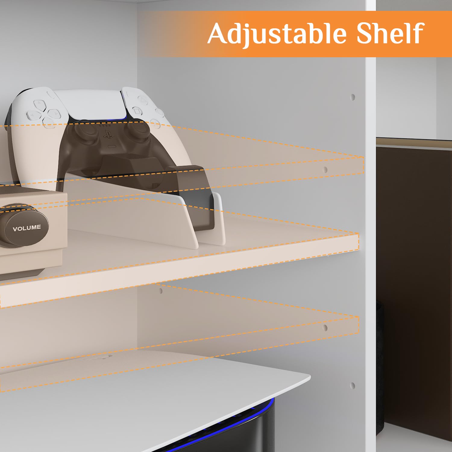 - [Large Storage Space] - This white TV stand for TVs up to 75 inches comes with ample storage space, it offers total 18 storage compartments, and the open shelf on the TV console table is adjustable with pre-drilled holes, you can easily adjust heights or remove the shelf to store larger items like fireplace. The doors on the top shelf are lift-up to open