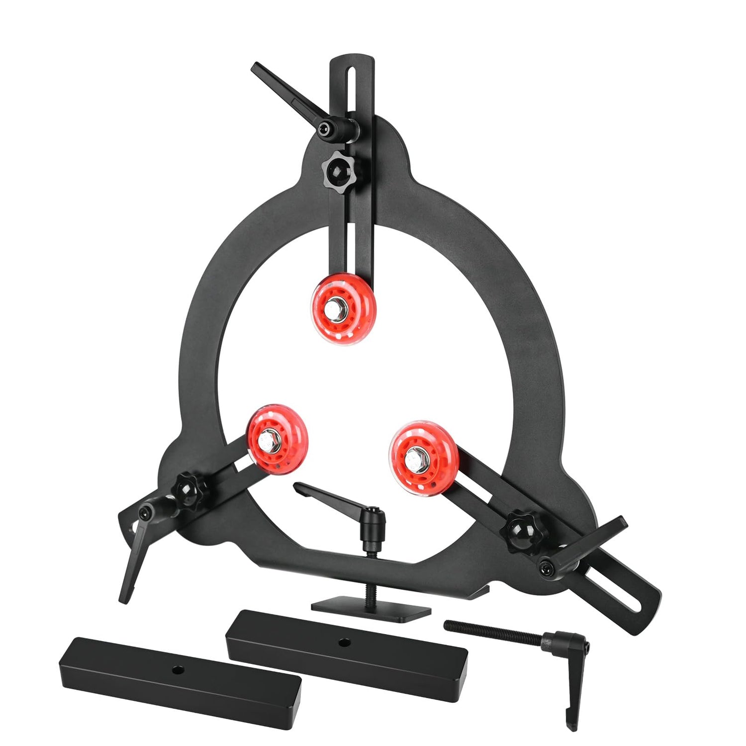 - The woodturning steady rest equipped with two quick-adjustment handle screws, easily adjust the three arms for convenient clamping and tightening of workpieces. The center frame design ensures concentricity, reduces vibration, provides support, and effectively prevents workpiece wobbling.