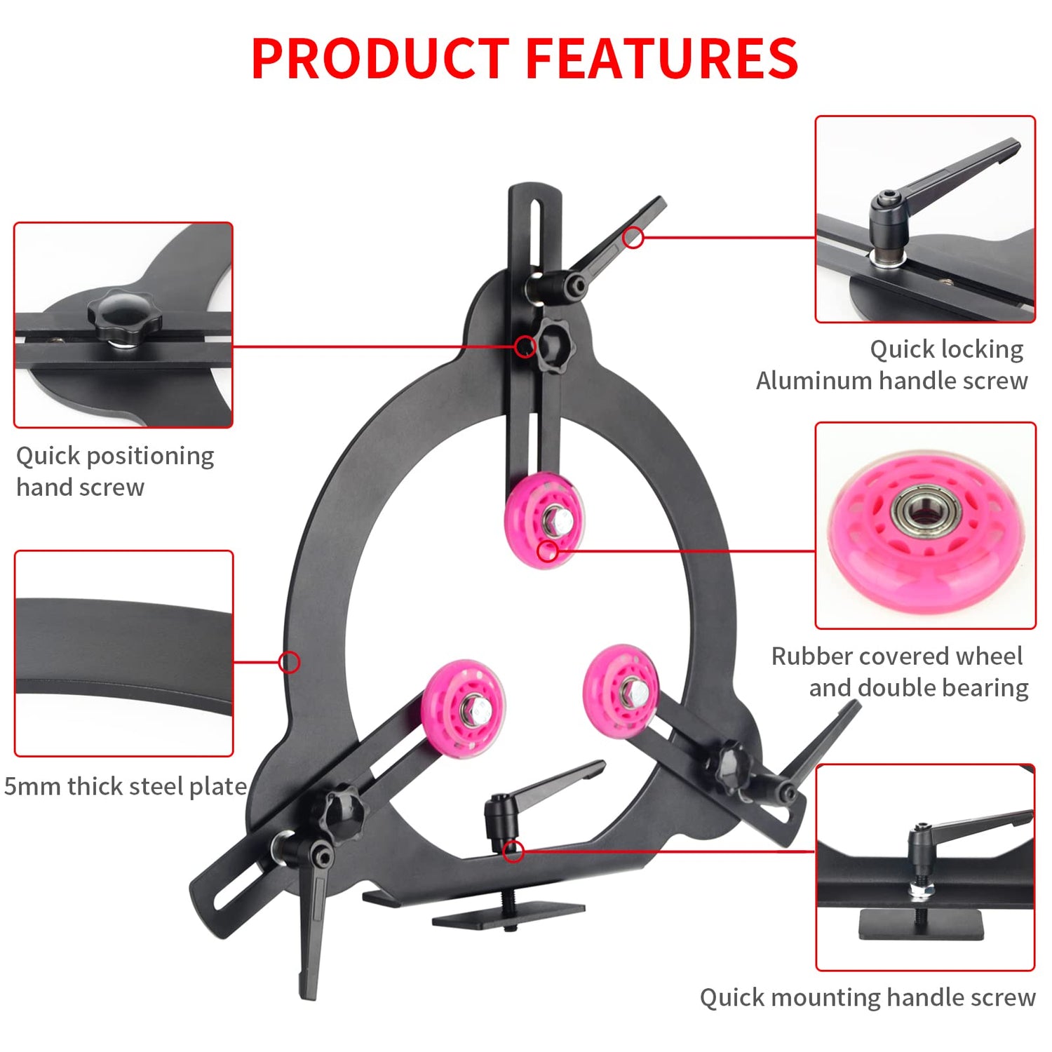 - The position of each wheel can be adjusted individually. Which gives it a wide range to easily adapt to any turning pieces from 1/2" to 5".
