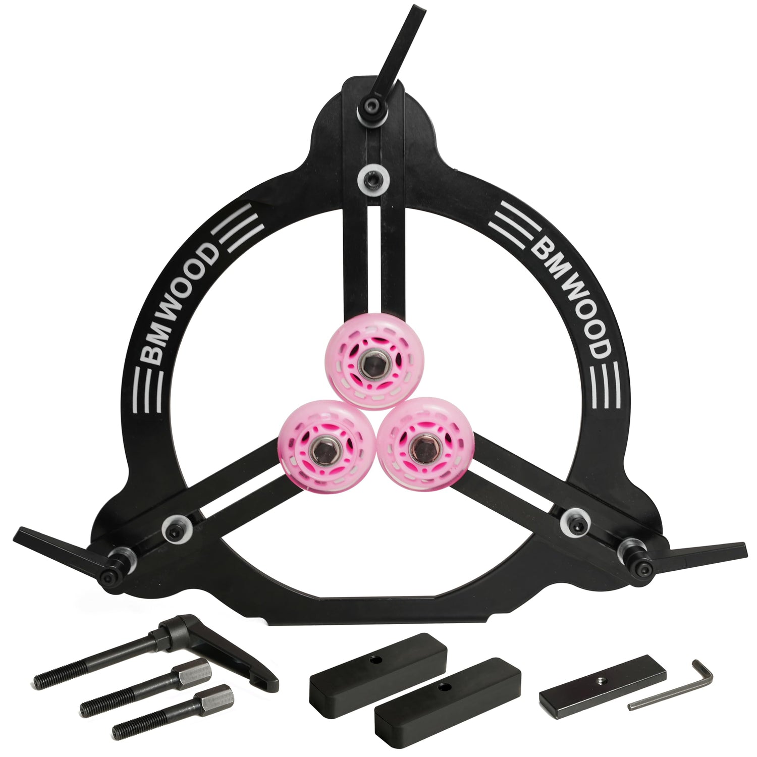 - The position of each wheel of the woodturning steady rest can be adjusted individually.