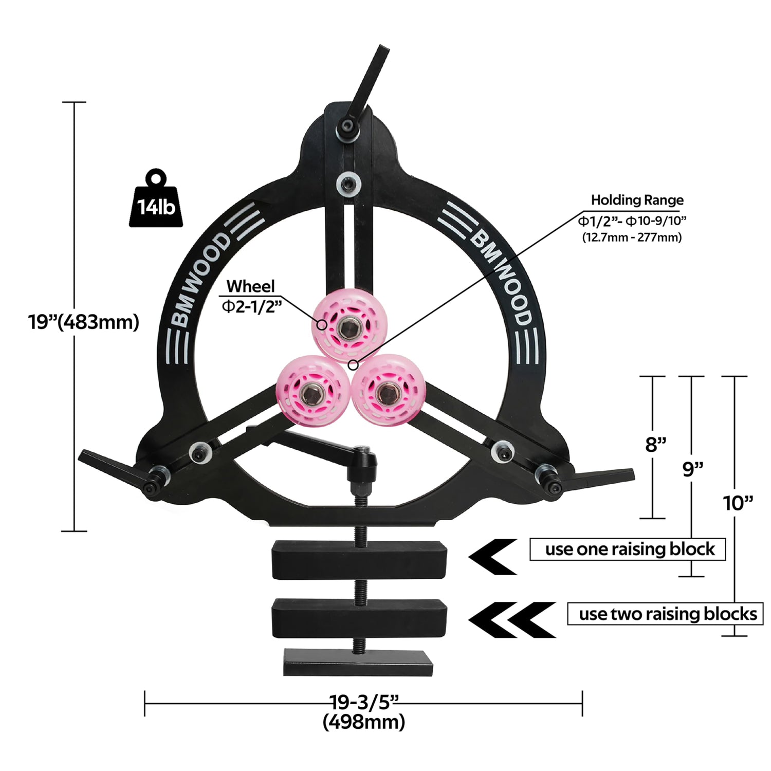 - The wood lathe steady rest adopts high-quality steel plate, and three rubber-coated rollers enhance mobility and stability. The double-bearing design ensures smooth rotation of the rollers, protecting the workpiece from leaving marks.