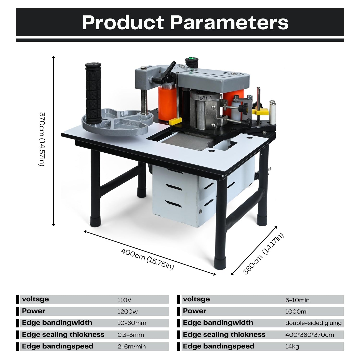 Woodworking Edge Banding Machine, Right Angle Curve Straight Line Edge Bander, Portable PVC ABS Edge Bander, Double-sided Gluing, Adjustable Speed