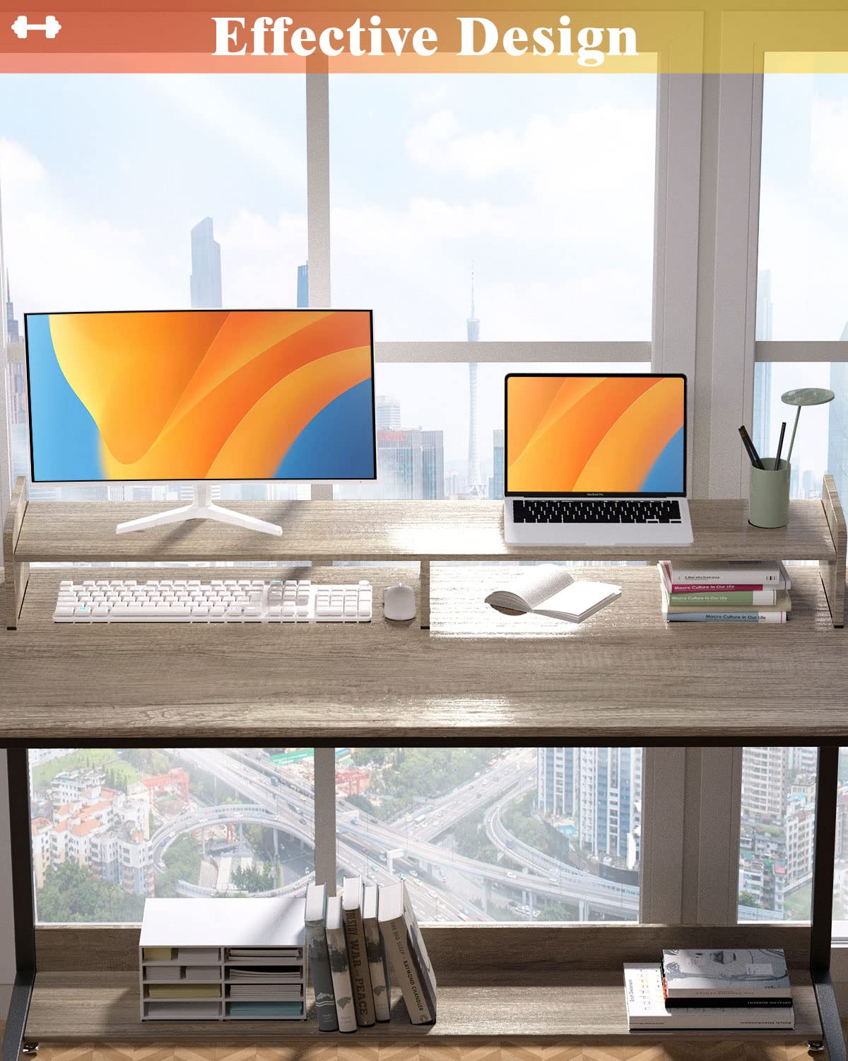 WOODYNLUX Computer Desk for Home-Office with Storage-Shelves - Modern Simple Style Metal Frame Laptop Notebook PC Study Writing Student Makeup Table Desk with Monitor Stand Footrest, Easy to Assemble.