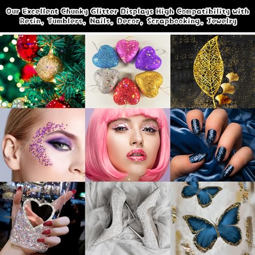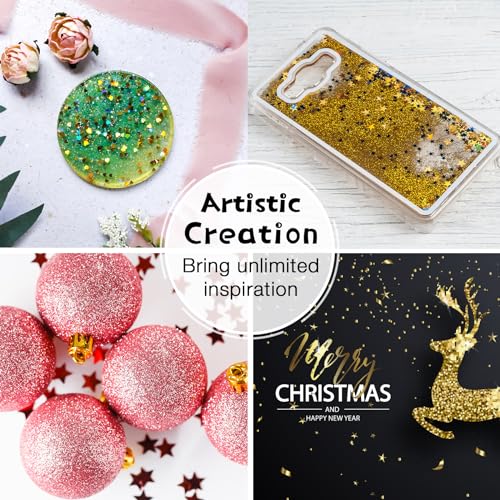 - Widely Application:A rich imagination creates wonderful things, you can use these glitter to fulfill any of your interesting ideas,such as making collages, DIY projects, slime, tumblers, makeup, postcards, posters, scrapbooking, greetings cards, holiday decorations, epoxy jewelry & epoxy tumblers and more.