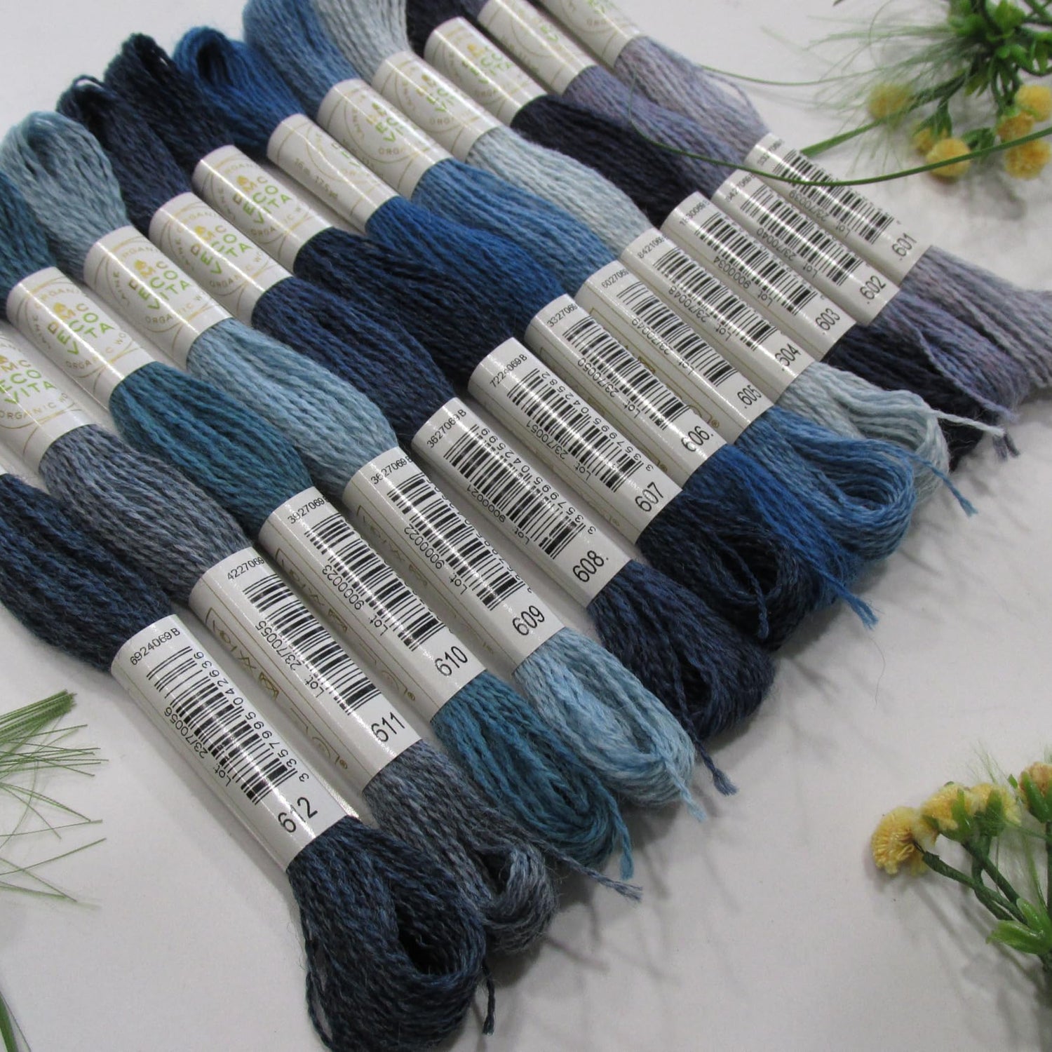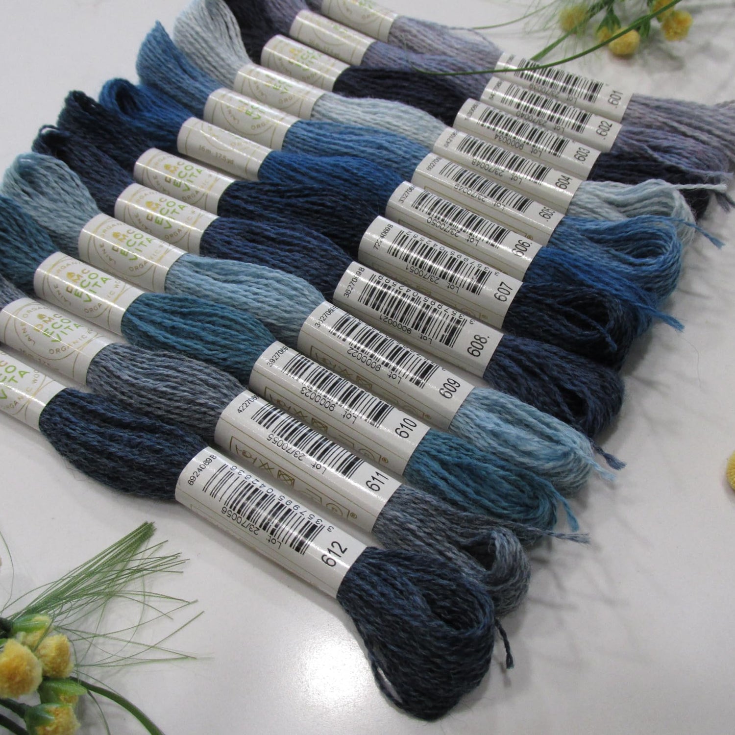 Details: This Pack of 12 skeins have numbers 601, 602, 603, 604, 605, 606, 607, 608, 609, 610, 611, and 612. This pack is sold as a set with one skein of each color. This pack was curated by BC HANDS This 100% organic non–mulesed wool has been dyed using infusions of completely natural ingredients such as walnut, rhubarb, indigo and juniper. Its even thickness and gentle twist make it perfect for hand embroidery, cross stitching, punch needle, weaving and mending. Crewel wool thread is used as a single strand, and cannot be divided. It is approximately the same thickness as three strands of Mouliné Spécial. Woolmark certified, this thread has undergone rigorous testing for colourfastness including for light, washing, rubbing and sweating. Eco Vita 360 is a very versatile thread that is suitable for a wide range of craft techniques. Its fluffy quality adds softness, texture and a three-dimensional quality to needlework. Explore its properties as you create stunning embroidery designs, cross-stitch and textural punch needle projects. Projects can be hand washed at 30 degrees, so it’s ideal for visible mending, darning, weaving or embellishing cherished textiles. There are over 60 luminous shades to choose from. From soft neutrals to bold vibrant hues, the natural dyes give the thread a gently mottled appearance that adds a touch of authenticity and organic beauty to your makes. Thread Facts Woolmark Certified - Durable, colourfast, fade and sweat resistant 100% Organic non-mulesed wool Made in Italy by DMC