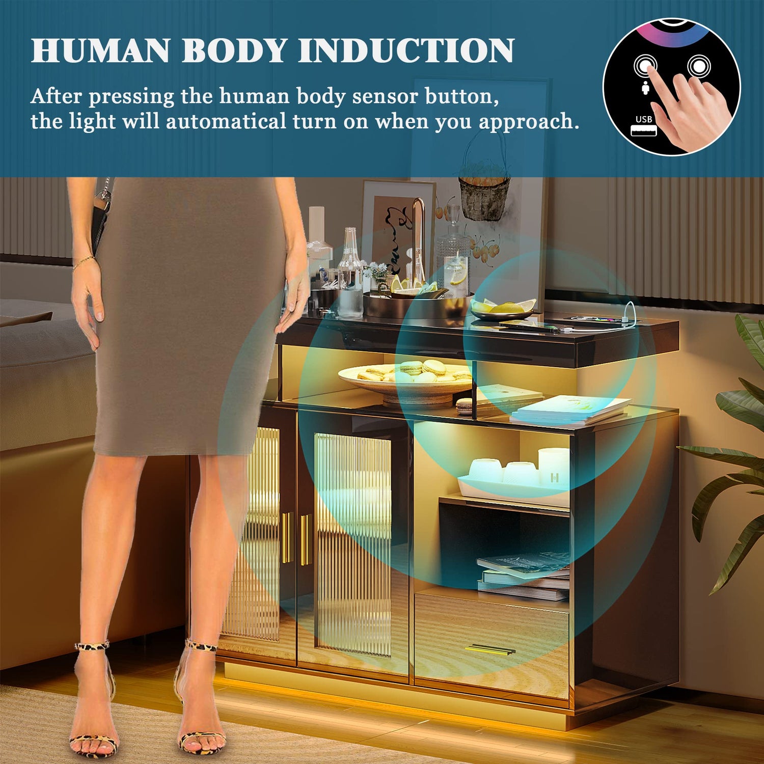 - ✅【Smart Charing Station】Designed with a 3-in-1 charging station ( wireless charging, wired USB port, Type-c port)our smart buffet sideboard provides you with a variety of charging methods, allowing you to charge multiple electronic devices at the same time.