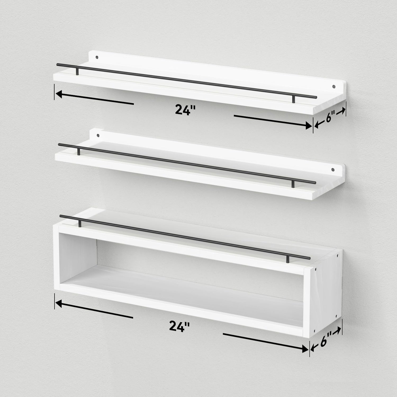 - [Beautiful and Practical Metal Rails] - In addition to its stylish and shiny appearance, the metal rails effectively prevent items on each shelf from falling, providing a safe storage space for bathroom items such as toilet paper, towels, aromatherapy and a variety of toiletries. When the floating shelf is installed in the living room, its rails provide excellent support for artwork, magazines, and picture frames without stands. It's time to dress up your home with new ideas.