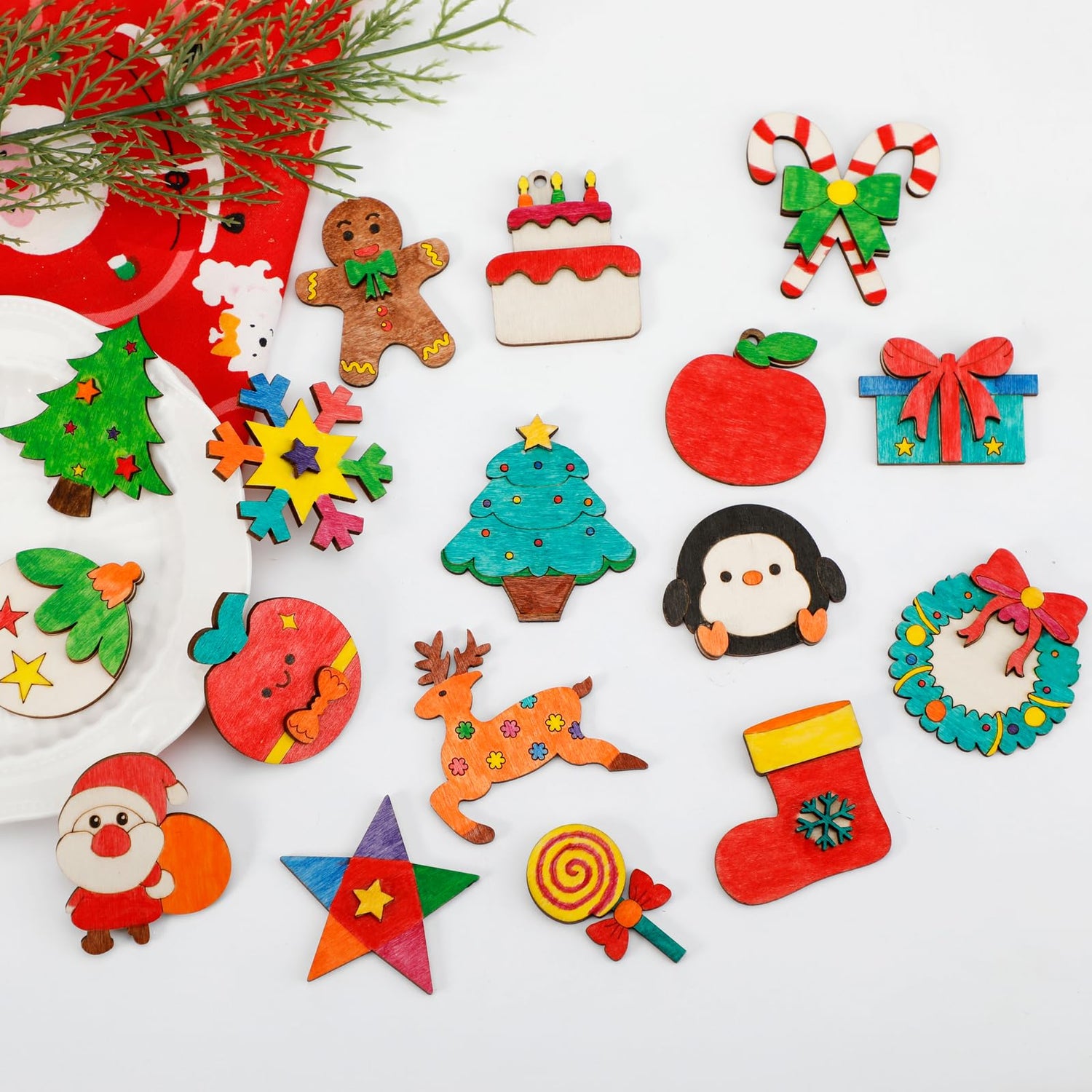 - Christmas Crafts for Kids: Includes 36 wooden Christmas crafts, 12 colored pens, 36 magnet stickers. DIY Christmas wooden magnets kit to meet your kid's creative needs. There are different designs such as Christmas trees, Christmas balls, snowflakes, etc