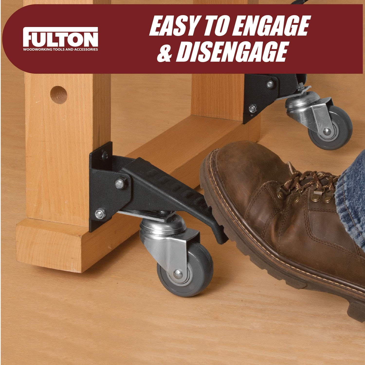 - This set of 4 casters work by simply pushing down on the pedals to raise your workbench off the floor. Once elevated you can move your bench, table or machine as desired, then lift up on the pedals to disengage and your workbench, table, cabinet, stand or machine sits firmly on the floor at its original working height.