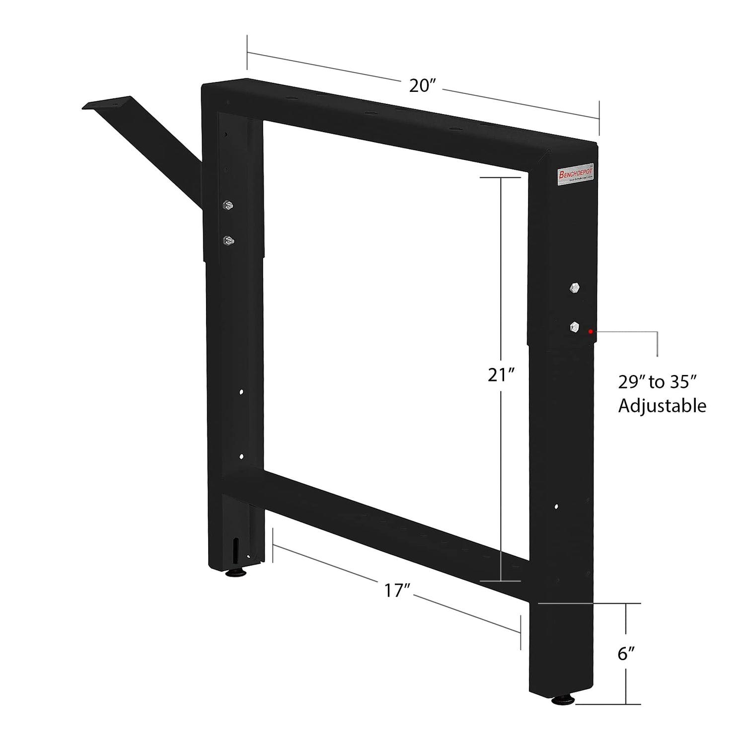 BenchPro Workbench Frame, Height Adjustable From 29" to 35". 500 lb Weight Capacity Per Leg. Our Powder Coated Frame is compatible with a variety of tops from particle board, laminated particle board, plywood, hardwood, plastic and many others.