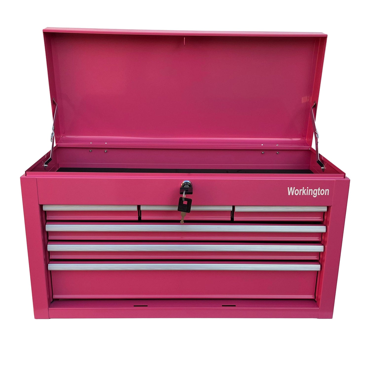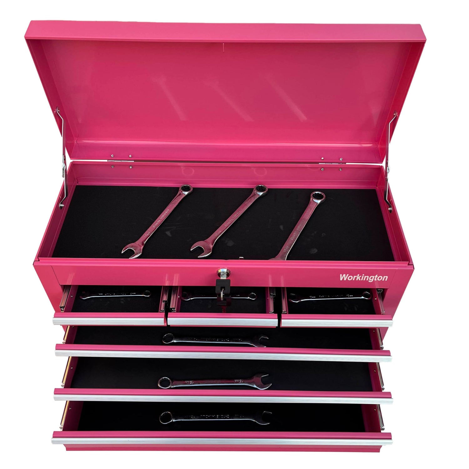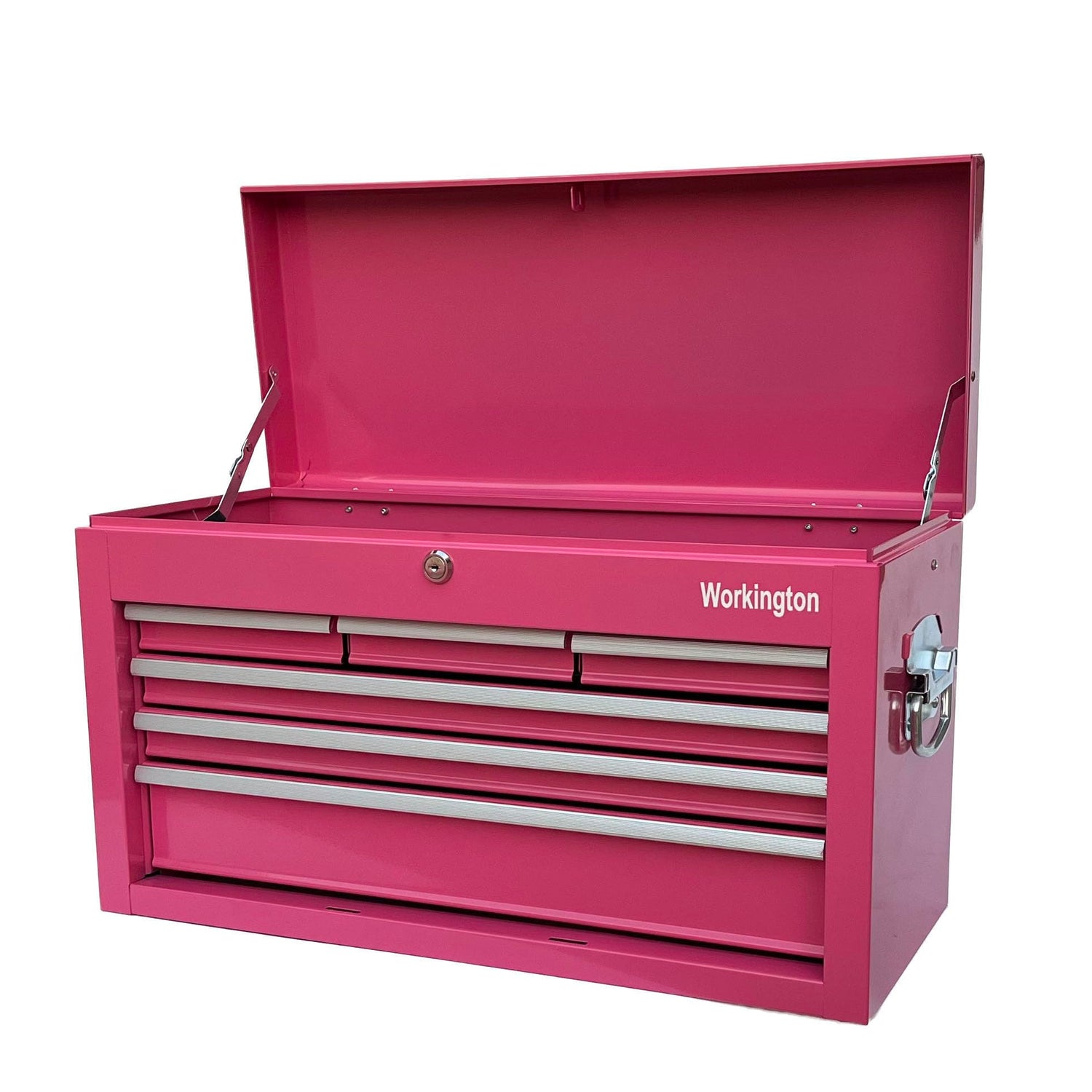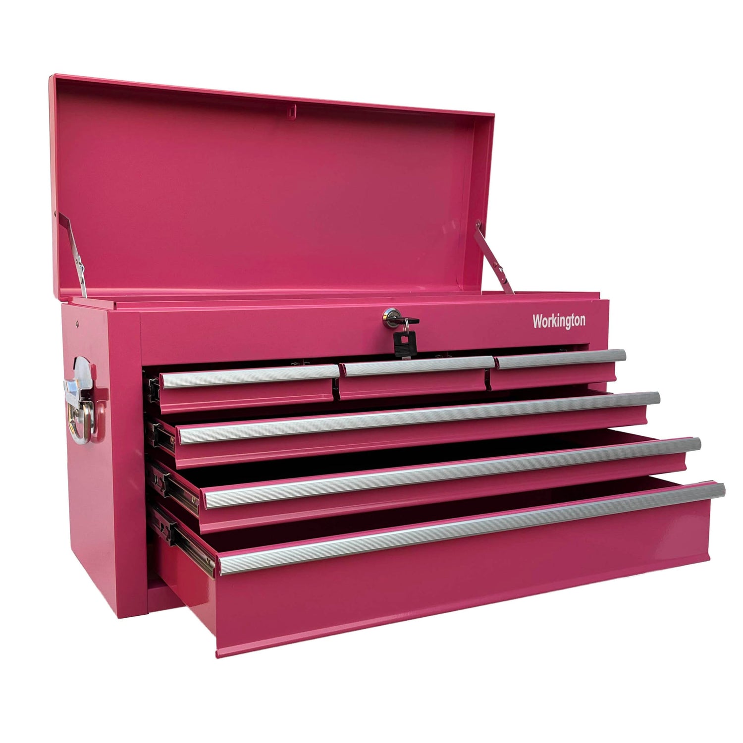 Workington Portable Metal Tool Chest with 6 Drawers, 24" 6-Drawer Tool Chest Cabinet with Ball Bearing Drawer Slides, Steel Tool Storage Box Organizer 4005 Pink