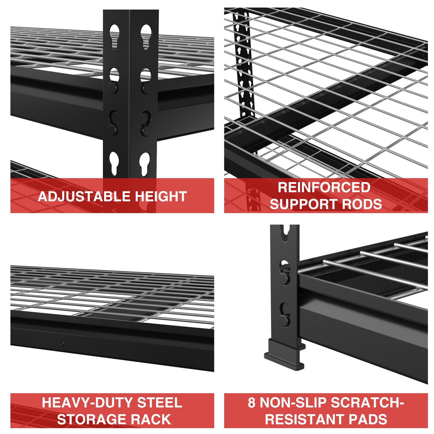 - 【Multipurpose Storage Rack】This shelving unit is versatile, suitable for use in garages, warehouses, storage rooms, kitchens, offices, living rooms, and more. Its wide range of applications makes it a practical choice for different environments.