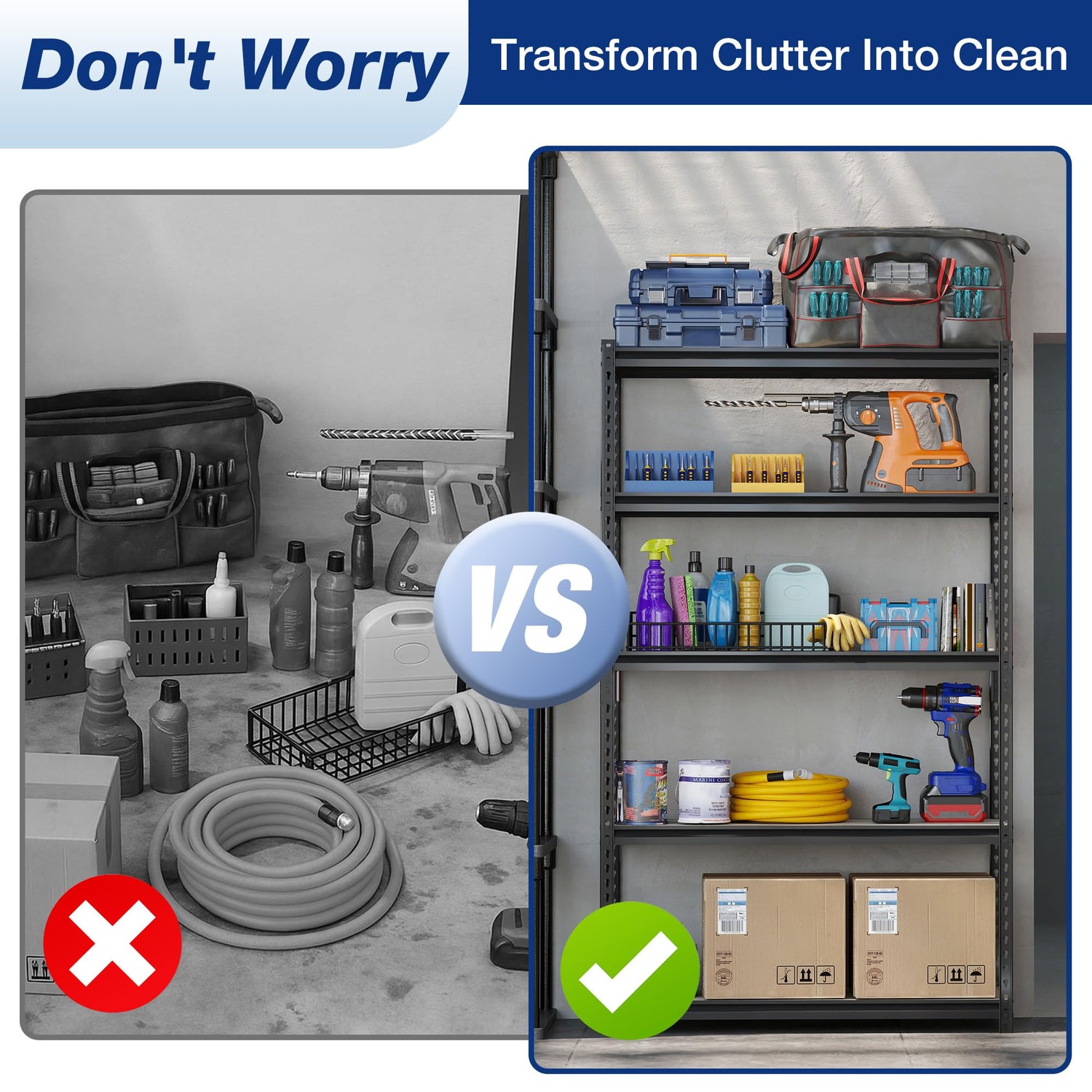 - Anti-Tip Protection : Includes an anti-tip kit and expansion screws for secure wall mounting. This garage shelving stays safe and stable—ideal for homes with kids or pets.