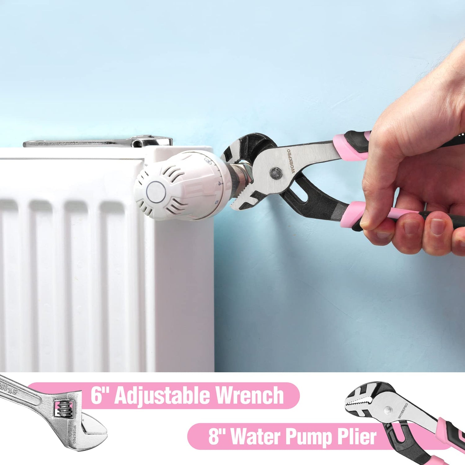 WORKPRO 52-Piece Pink Tools Set, Household Lady Tool Kit with Storage Toolbox, Basic Tool Set for Home, Garage, Apartment, Dorm, New House, Back to School, and as a Gift