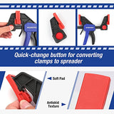 - 💡 6” & 12” Clamps Set - The set contains 4 pieces 6” bar clamps and 2 pieces 12” bar clamps. The 6" clamps can be set to spreaders of sizes up to 11-9/64” and the 12” clamp is also a spreader with sizes up to 17-21/64”.
