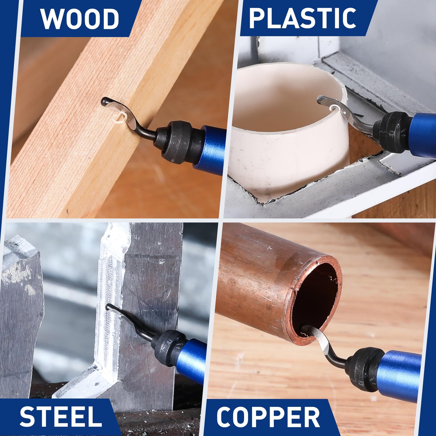 - Multi-Material Application: Suitable for a wide range of materials, our tool is perfect for cleaning up metal edges, including brass, steel, aluminum, copper, or PVC pipes. It's also great for trimming the edges of 3D-printed plastic objects or parts. Our deburring tool is the perfect plumbing tool for professional plumbers and works great for industrial professionals, machinists, or DIYers