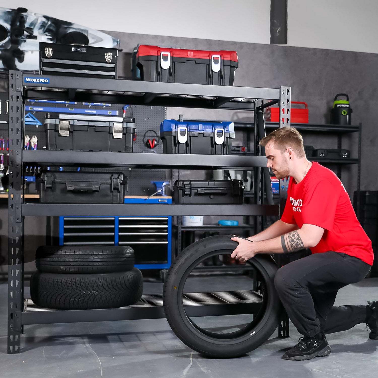 WORKPRO Garage Shelving, 68" W x 24" D x 65" H, 7200 LBS Load, Heavy Duty Metal Shelves for Storage, Industrial Storage Rack for Warehouse Kitchen Shop Basement, Black, Pack of 1