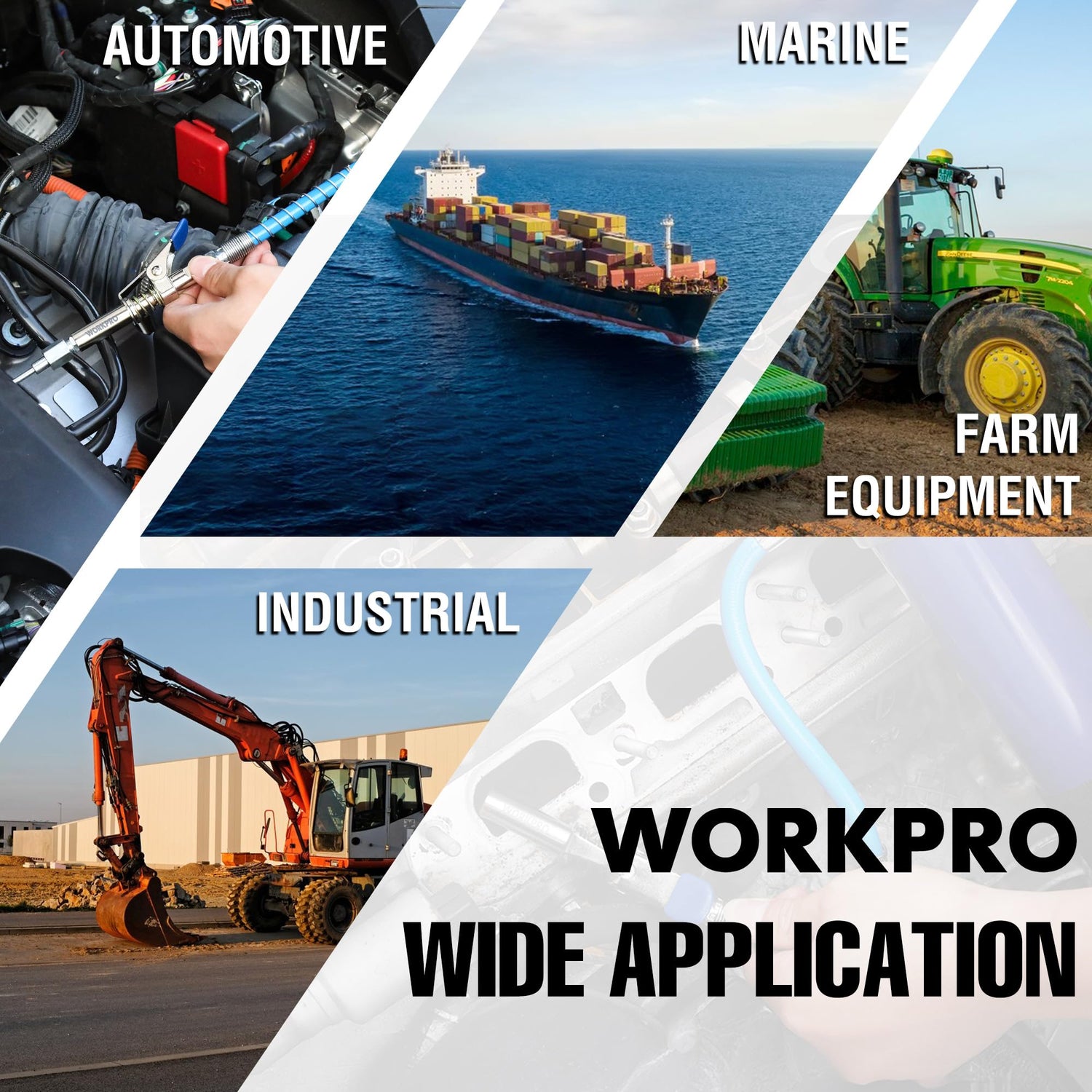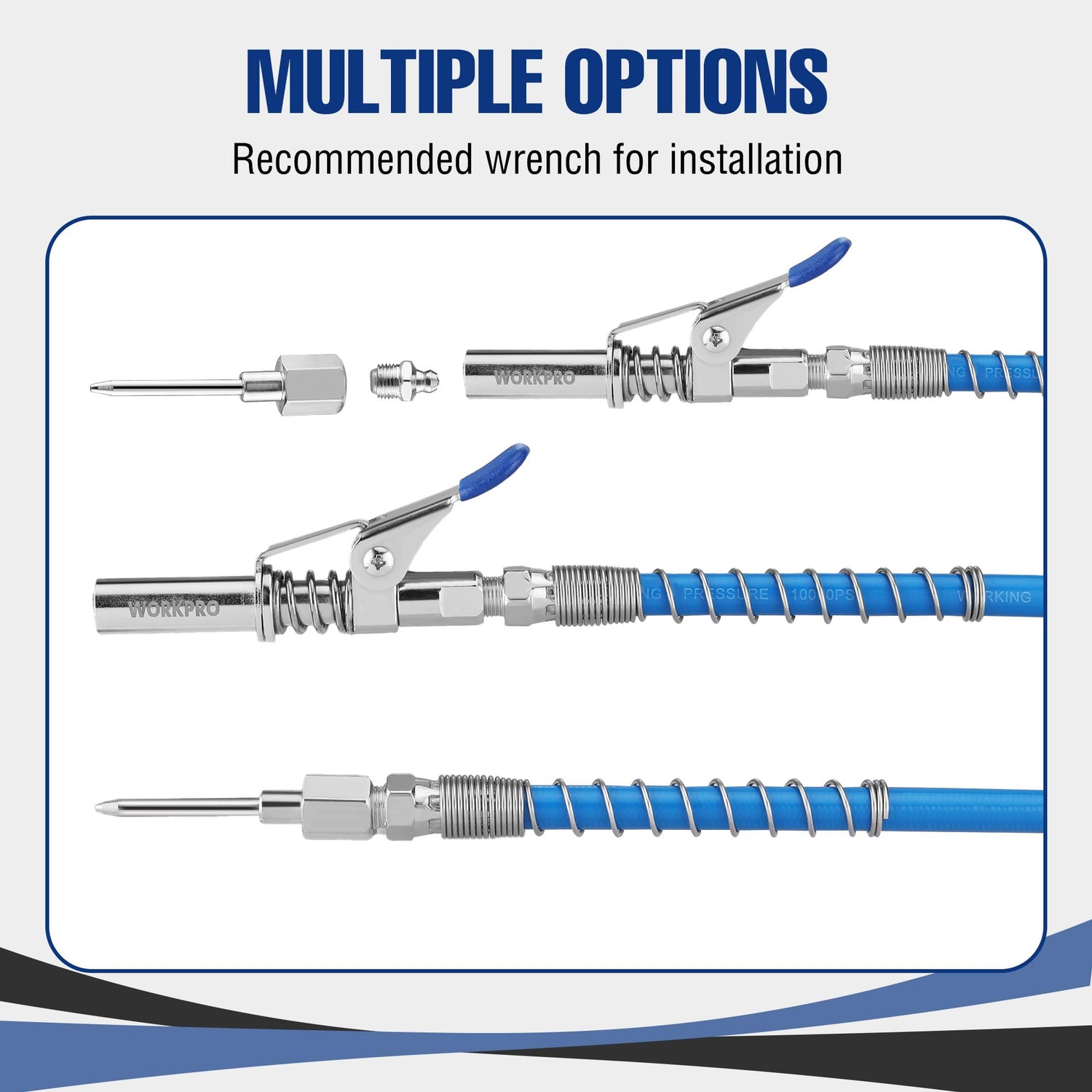 WORKPRO Grease Gun Coupler Set, Quick Release Grease Gun Coupler with Grease Gun Needle Tip and 12” Grease Gun Hose, 10000PSI Strong Lock onto Zerk Compatible with 1/8" NPT Fittings