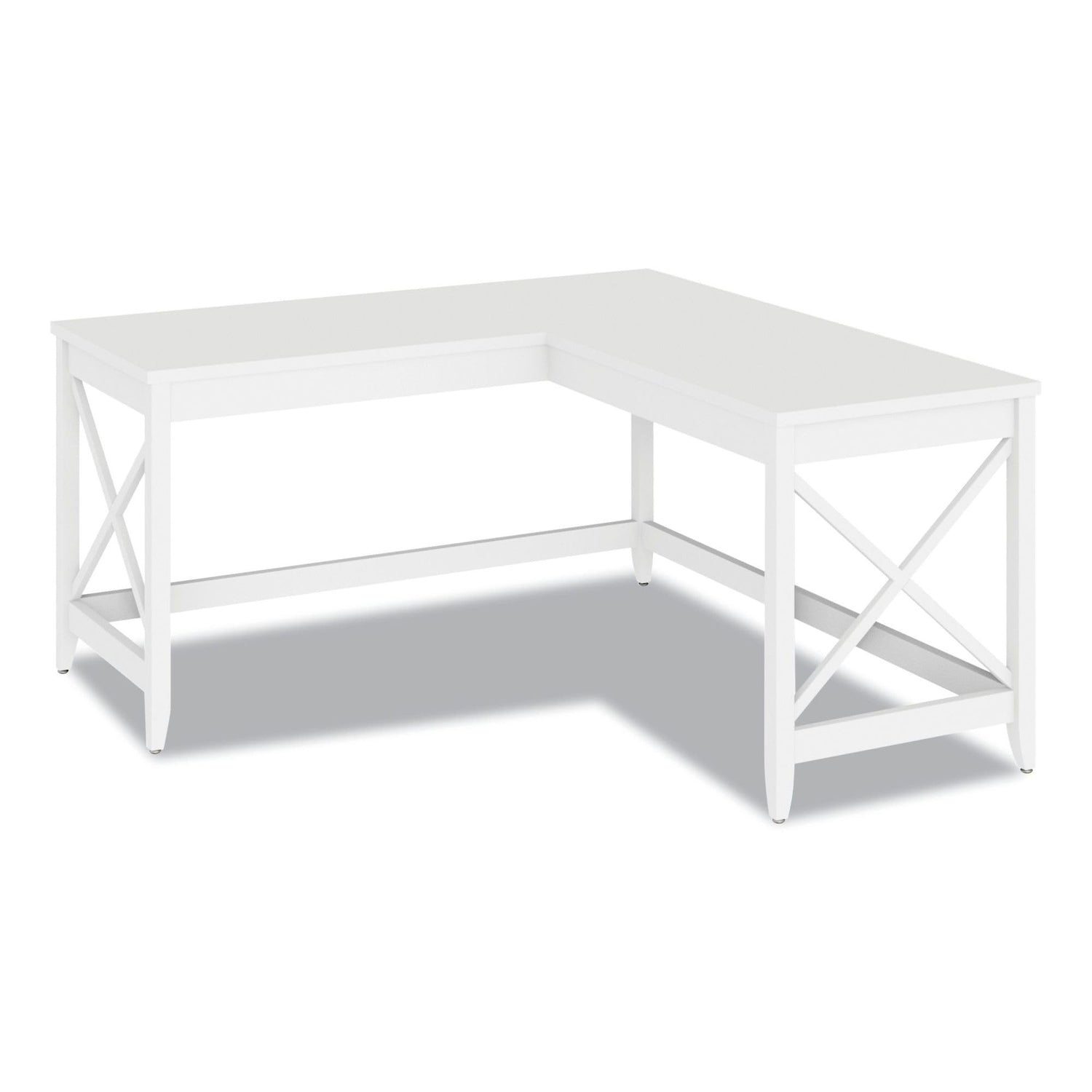 Workspace by Alera L-Shaped Farmhouse Desk, 58.27" x 58.27" x 29.53", White