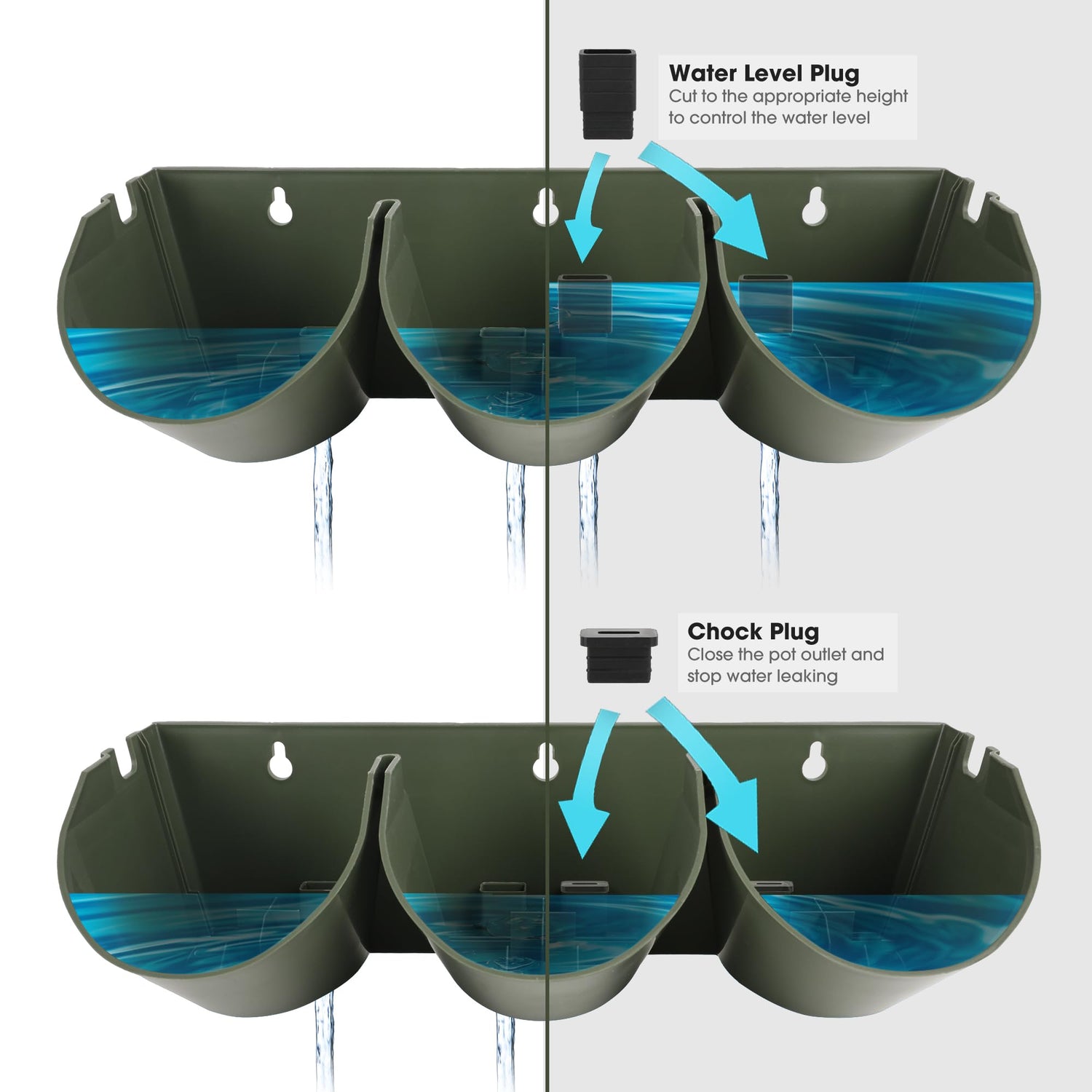 - STACKED VERTICAL DESIGN - The water filtration system from top to bottom can effectively save and retain moisture. Includes 6x water filter panels used to prevent leaves and solid impurities from blocking the outlet of the pots, 24x water level plug used to control the water level and 24x chock plugs to close the pot outlet and stop water leaking.
