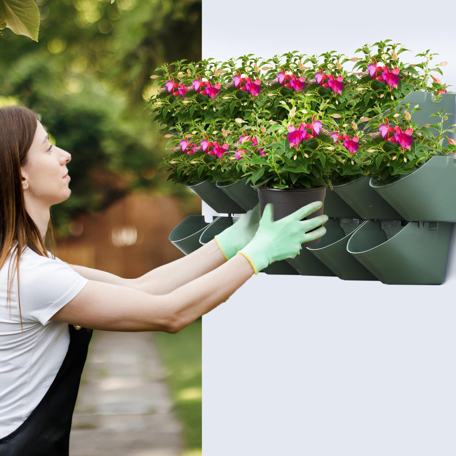 - INCLUDES 6 MODULAR WALL PLANTERS - We’ve included 6 3-pocket planters within our wall mounted hanging planter for you to create layers of potted plants for your vertical garden. Use a few wall hanging planter in one area or use them all. You can even add more layers to your vertical garden by purchasing additional compatible vertical garden pots. 6x 3-pocket planters make up 3.2ft², total of 18 plants required.