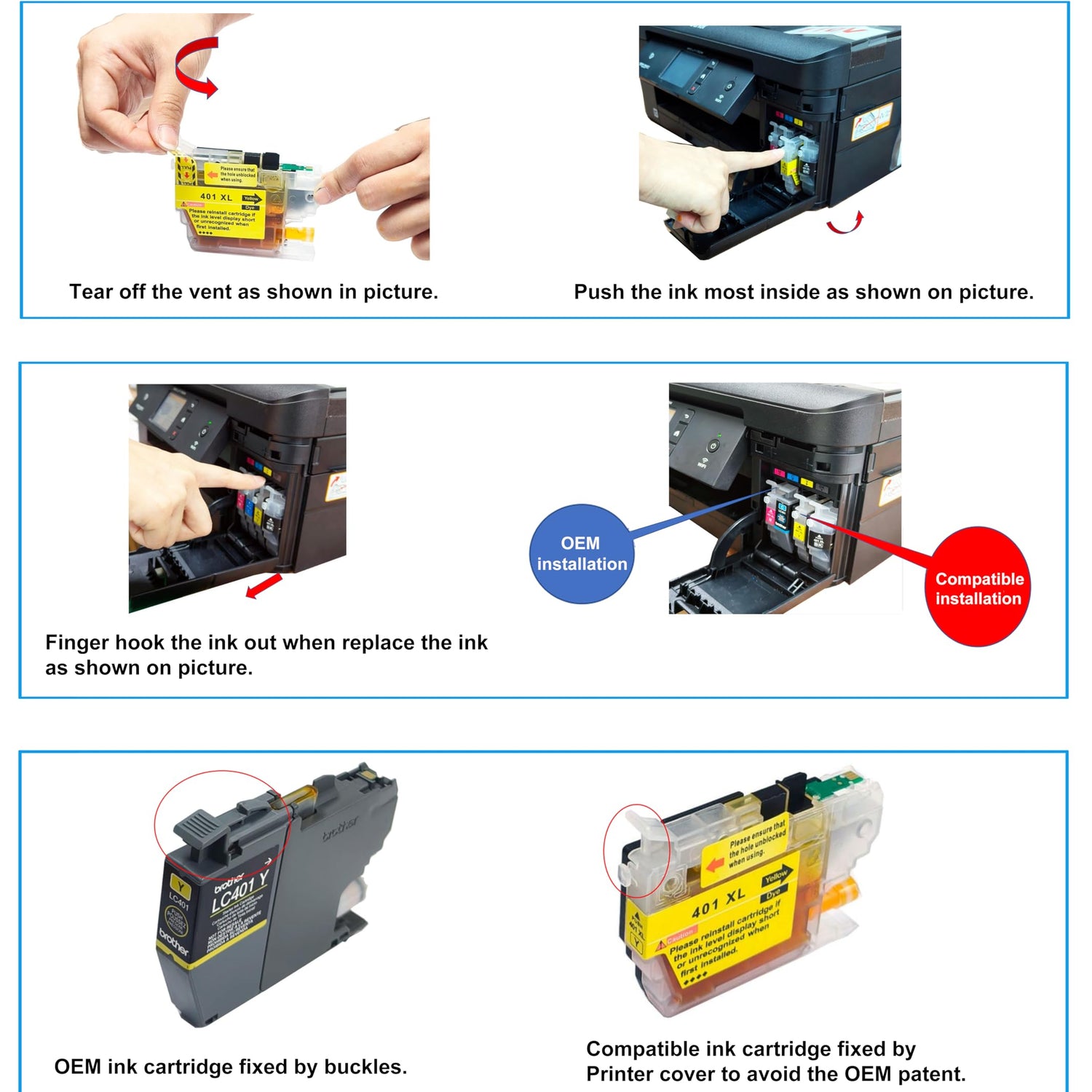 - PrintImpression for superior print performance: Our replacement ink for Brother LC401 Ink Cartridge undergo rigorous quality testing and With latest intelligent chips. No streaks, no fading, no leaks, delivering consistent and smooth prints that will exceed your expectations.