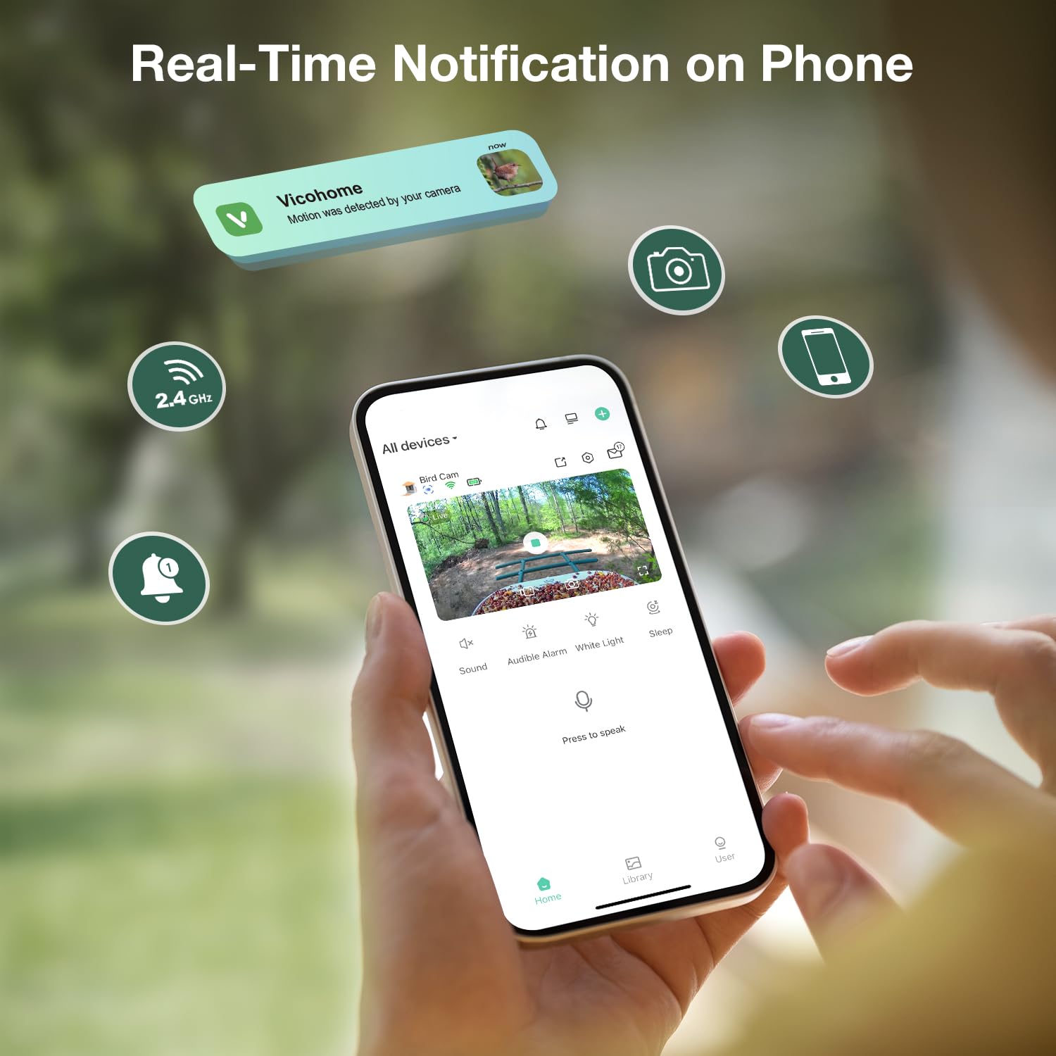 • 📱Phone Arrival Notification & 2.4GHz Wi-Fi Connection : The smart bird feeder with camera automatically captures all visiting birds, and you'll receive instant notifications through our app. Hummingbird camera equipped with a 5dBi antenna for a more stable 2.4GHz Wi-Fi connection, you can enjoy uninterrupted bird watching without fear of signal loss.