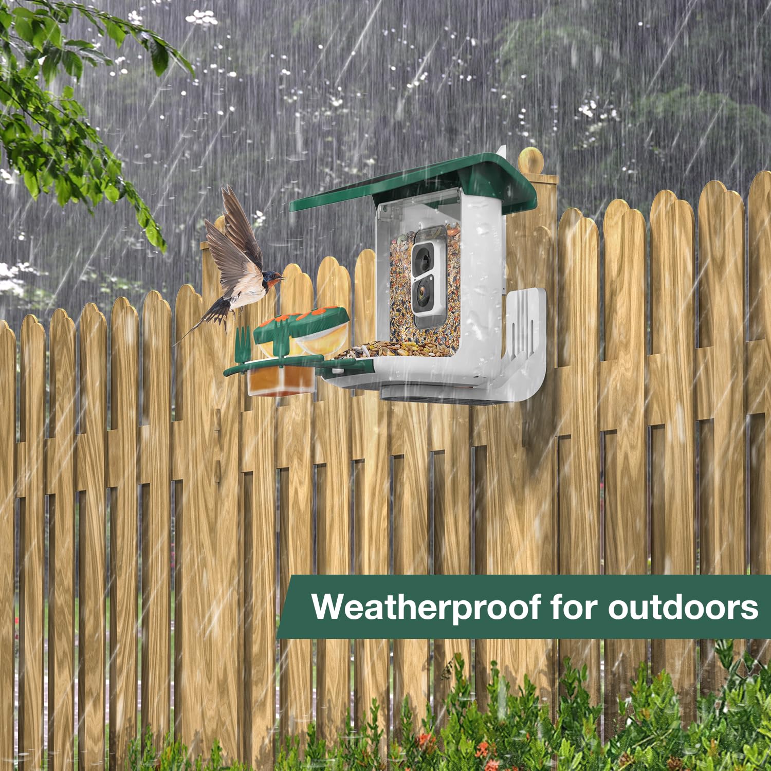 • 🌧️Modern Bird-friendly Design & IP65 Waterproofing: This intelligently crafted bird feeder serves as an exquisite sanctuary for the birds in your backyard. With its ample 1.8L capacity, you won't need to refill bird food frequently. You can easily hang the birdhouse camera from a tree using the included hanger and bottom mount, or attach it to a pole, wall, or fence. Crafted from premium thick ABS and built sturdy, rest assured that rain won't dampen the bird feed inside the feeder.