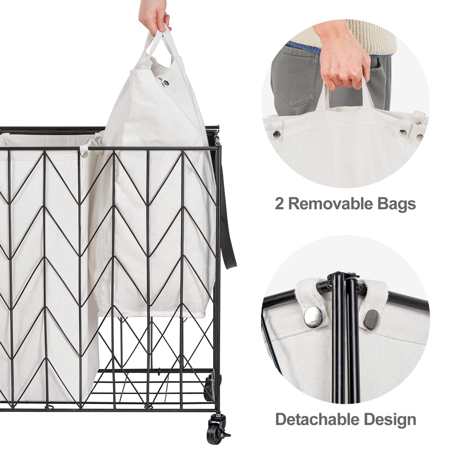 - Large Capacity; Sort Laundry: The laundry basket has 2 bags with sufficient capacity (each laundry basket holds 57.5 L, a total of 115 L), helps you sort your clothes by color and material, keeps your clothes neatly organized and saves your time