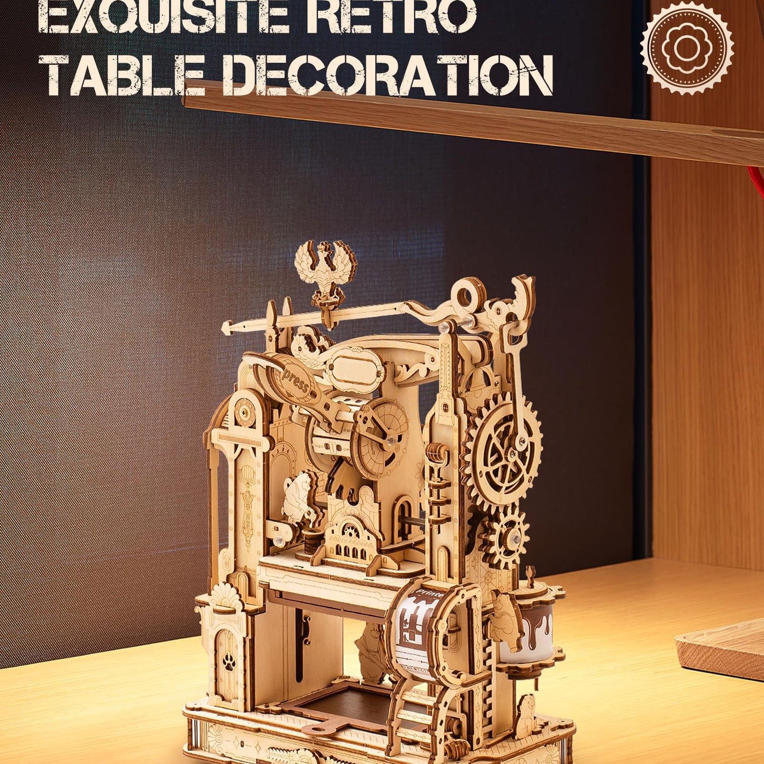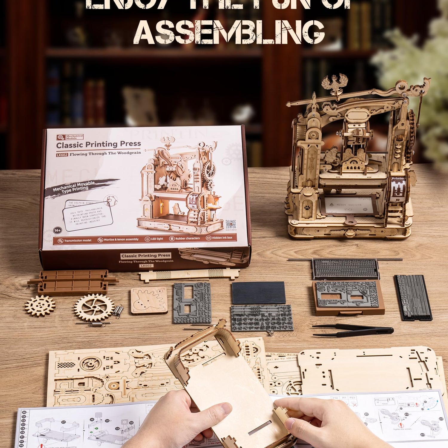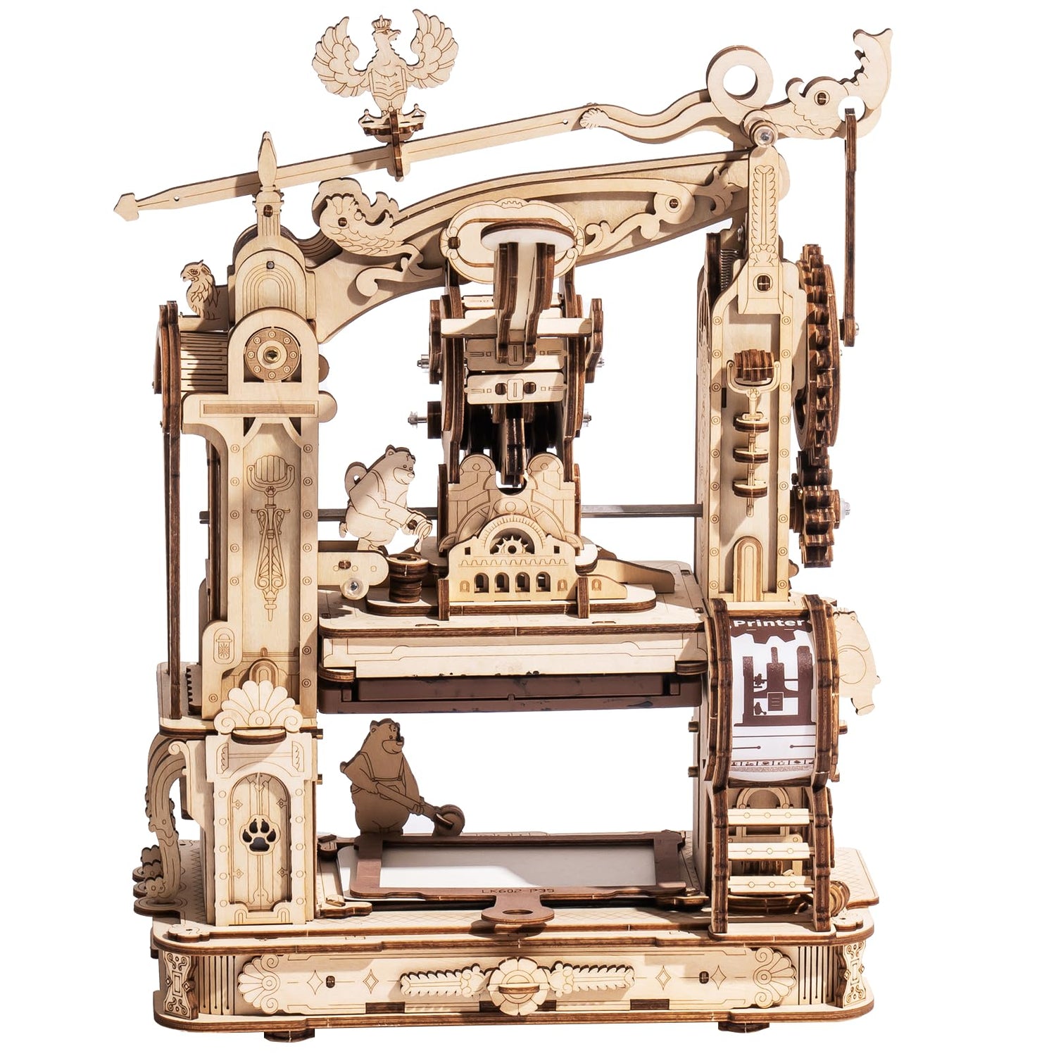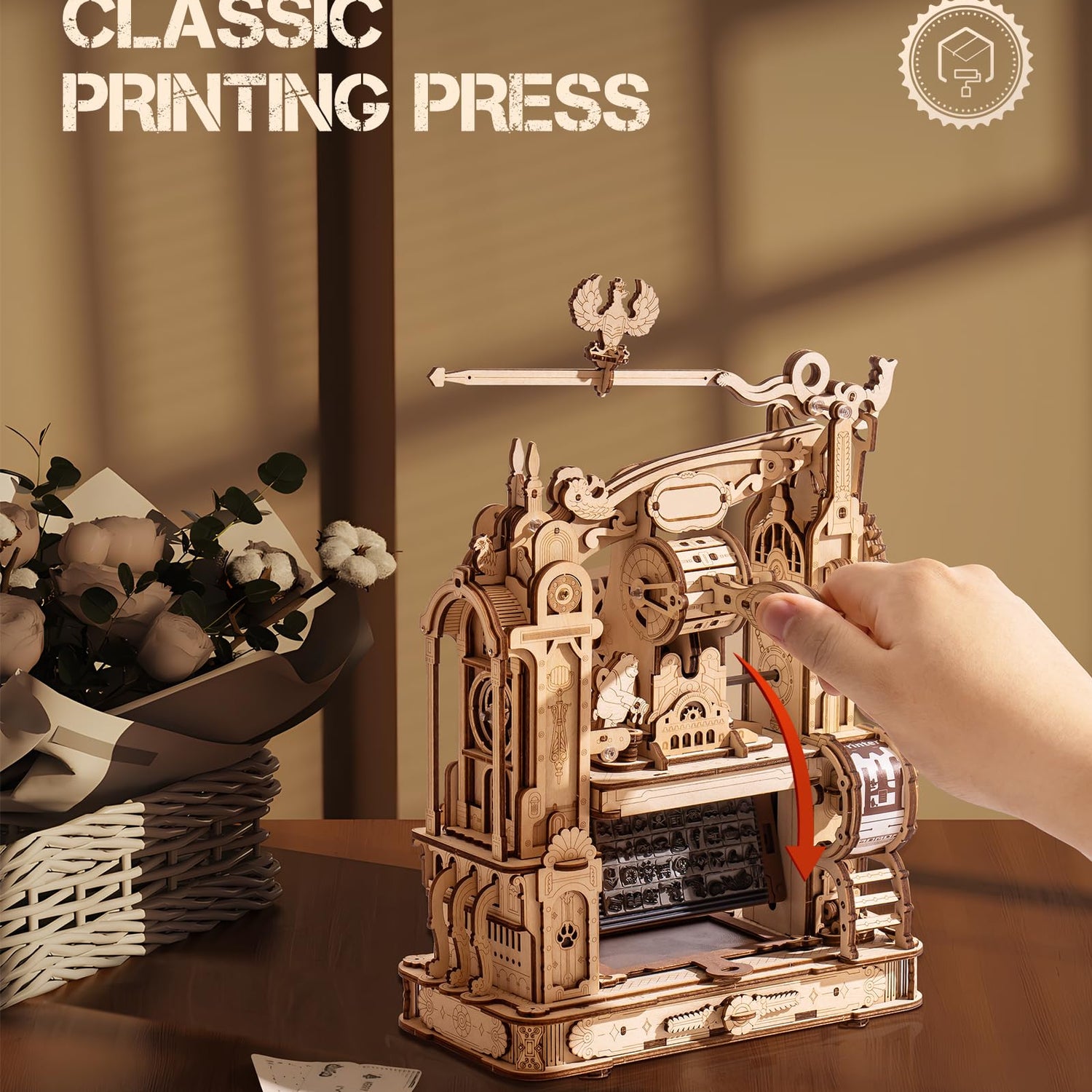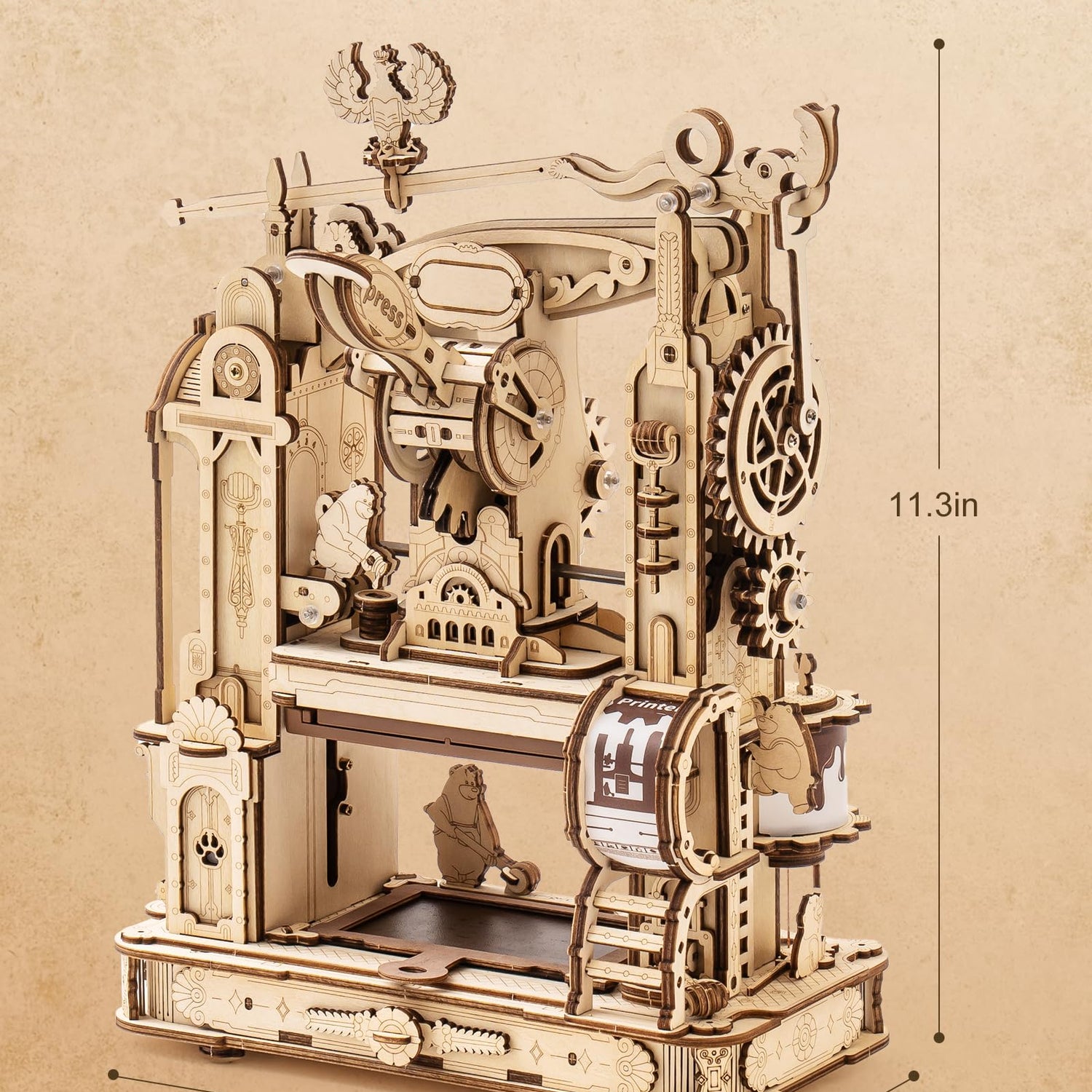 Wowood 3D Puzzles for Adults, STEM Building Kits for Kids, DIY Mechanical Gears Wooden Puzzles, Birthday Gifts for Men/Women (Classic Printing Press)