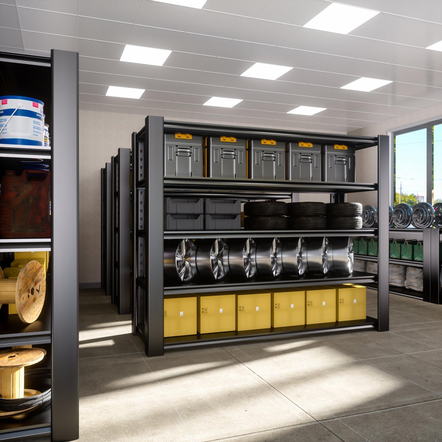- Heavy Duty Garage Shelving: This heavy-duty metal shelving unit is perfect for storing tools, equipment, and other heavy items in your garage, basement, or workshop.