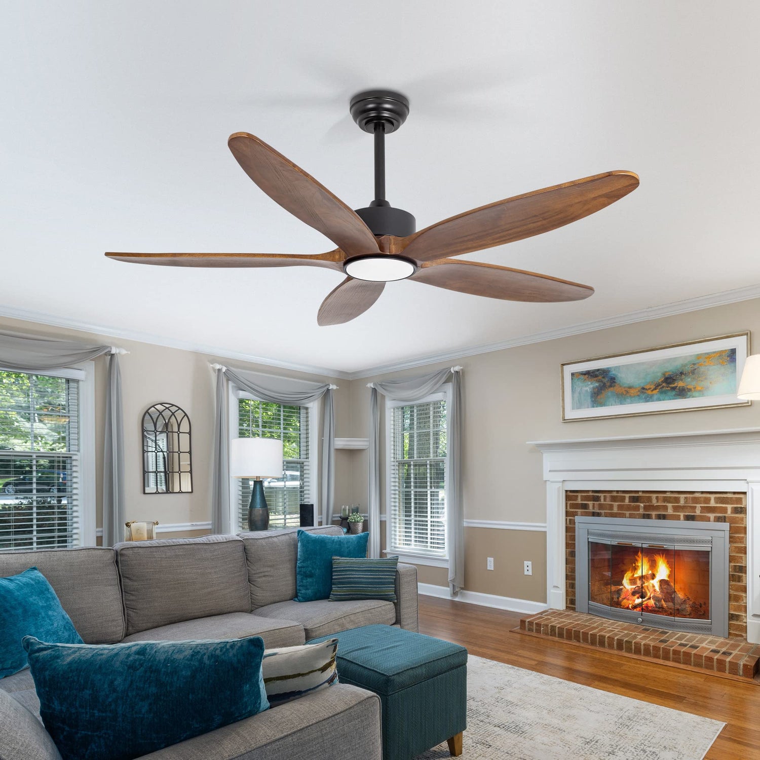 - Quiet DC Motor - ceiling fan features a noiseless DC motor that provides both durability and powerful performance, while also being energy-efficient. The 5 reversible solid wood blades of the fan can keep your room cool in the summer and assist in circulating warm air to reduce energy costs during the winter.