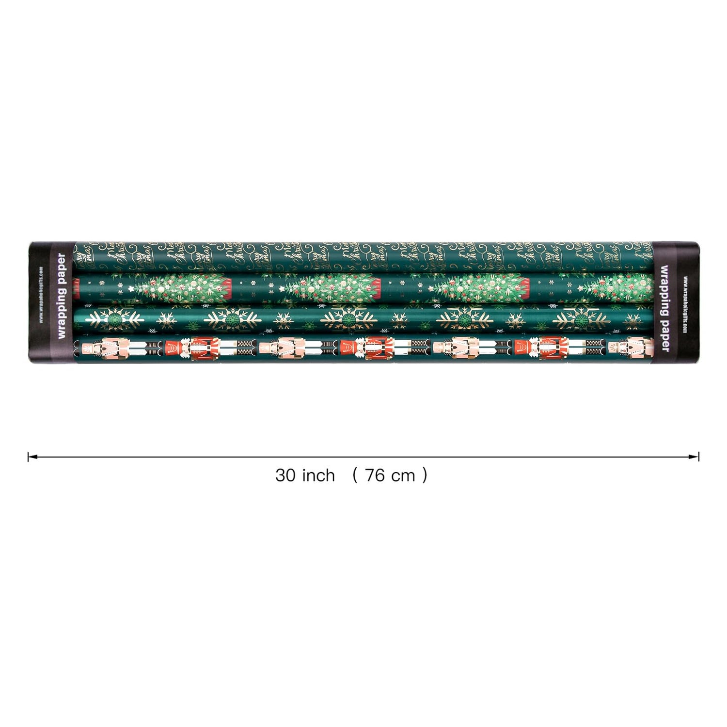 WRAPAHOLIC 30 Inch Nutcracker Christmas Wrapping Paper Roll - Jumbo Roll Green Christmas Tree, Snowflakes and Nutcracker with Metallic Foil Shine Design - 4 Rolls - 30 Inch x 120 Inch Per Roll