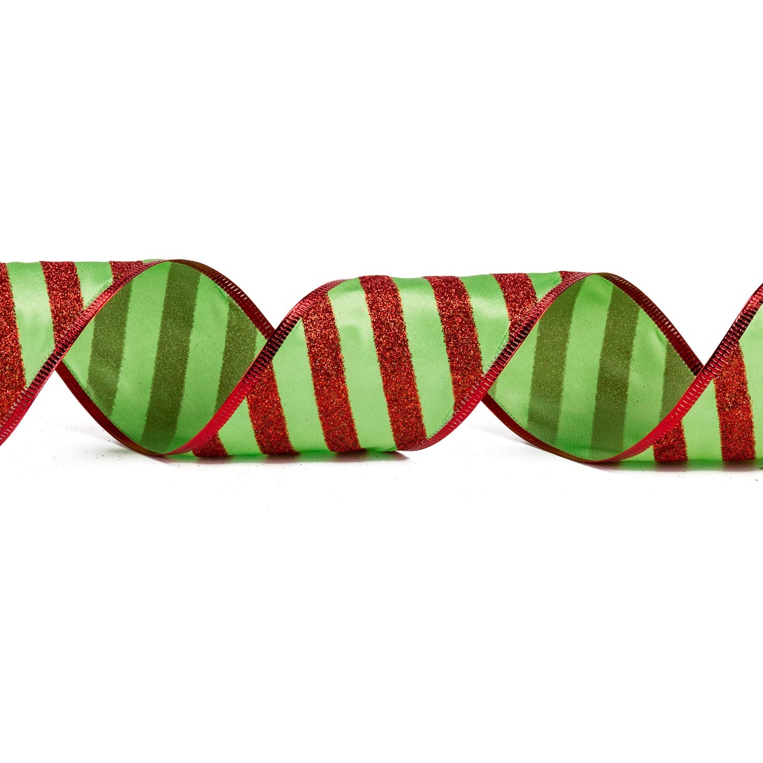 WRAPAHOLIC Christmas Wired Ribbon - 2.5 inch x 25 Yard Each Roll - Green with Red Glitter Stripe Ribbon - Red Wired Edge