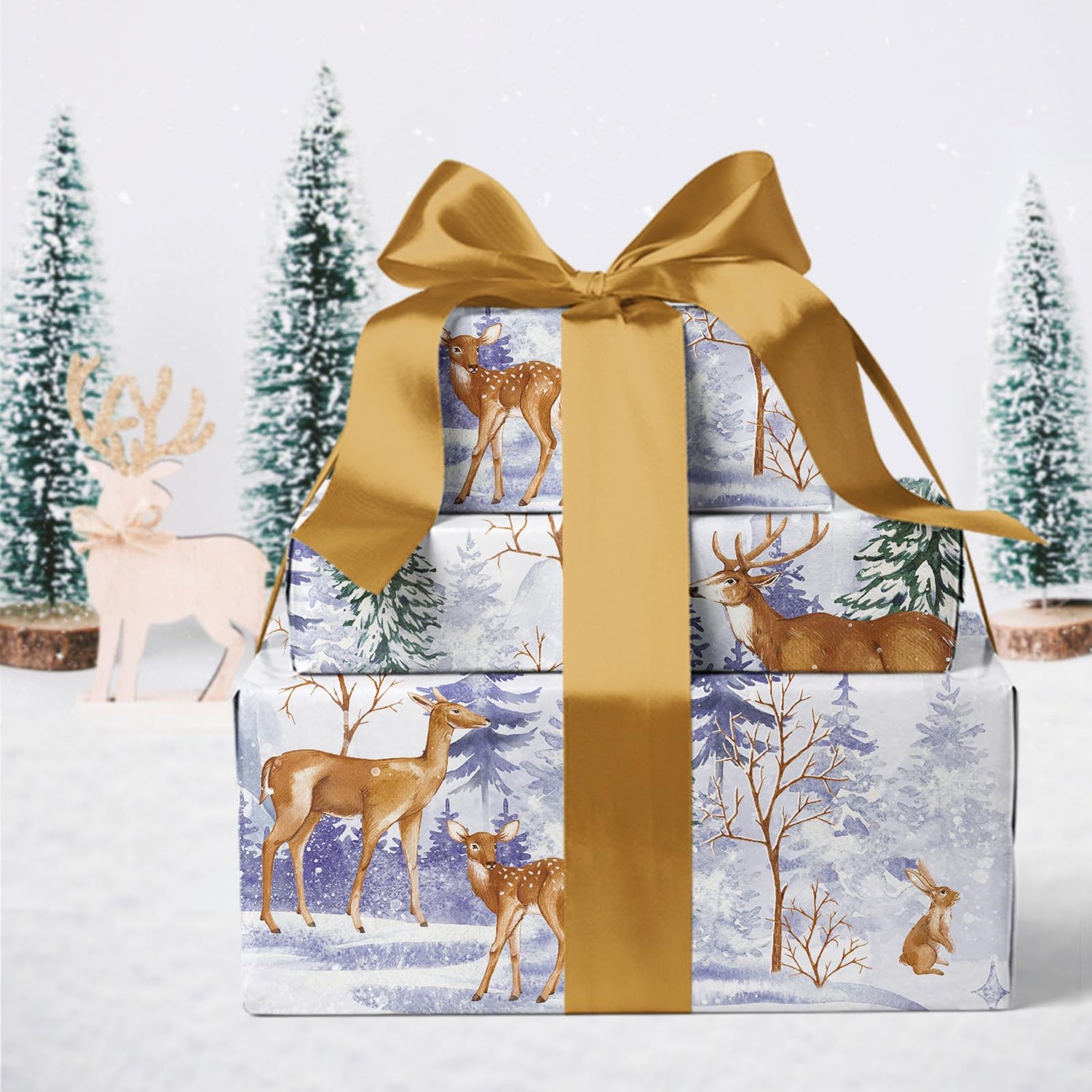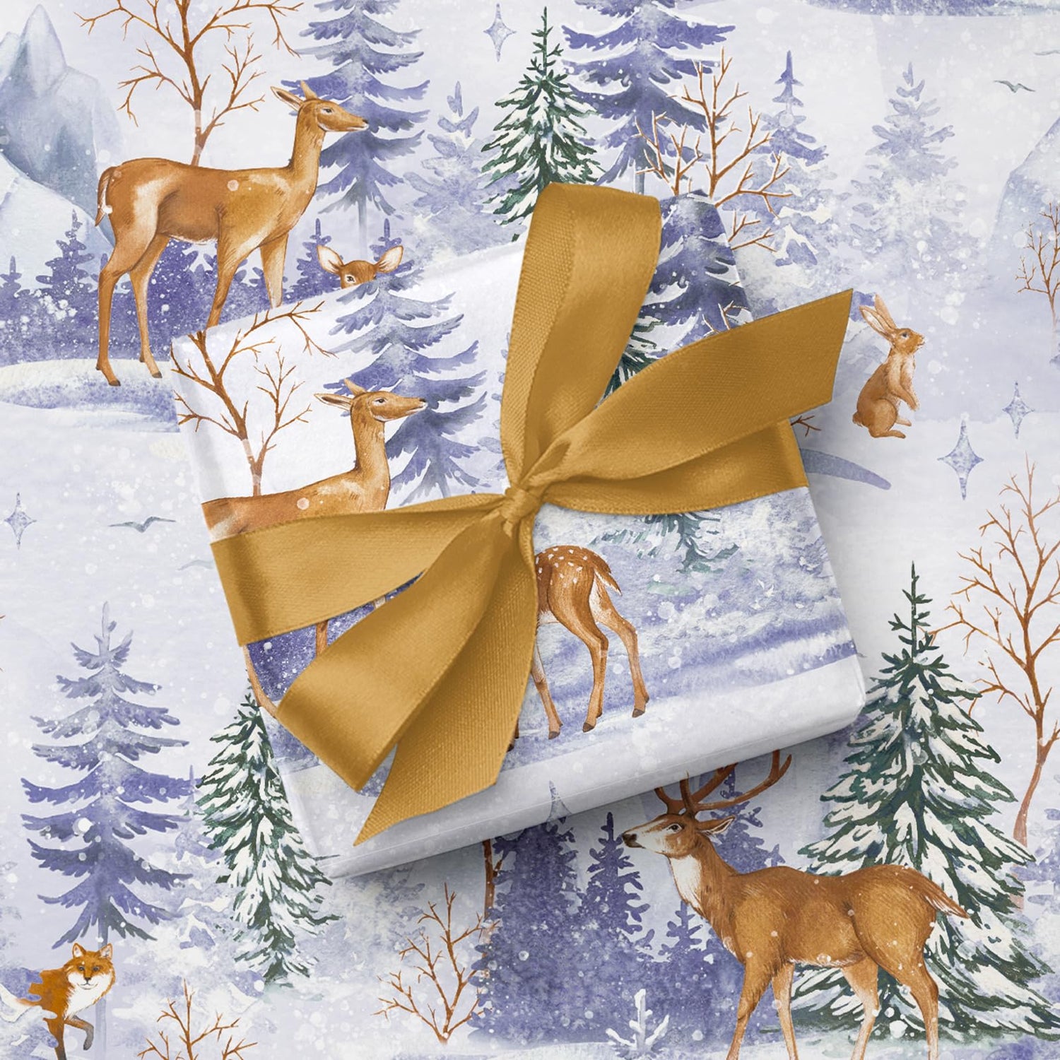 - Christmas Design: Kraft watercolor animal and winter forest landscape design, creating a magical and festive atmosphere. This Christmas wrapping paper will make your gift unique and memorable.