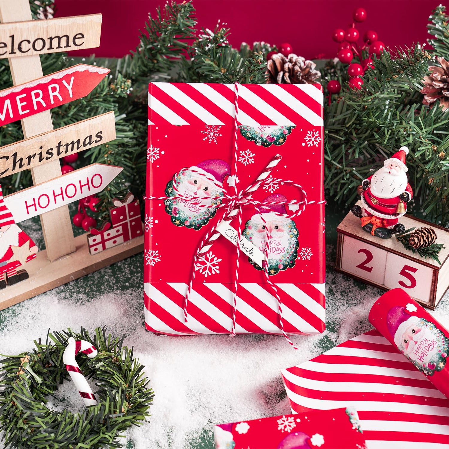 - Reversible Design: Red santa claus with Christmas garland printed on one side, red and white stripes printed on the reverse. Two different designs make unique and varied gift presentations easy.